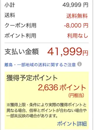 私の環境では楽天ポイントが『2,636円相当』付与されるので、実質『39,363円』。まさかの実質3万円台に突入!さすが楽天スーパーSALEです。