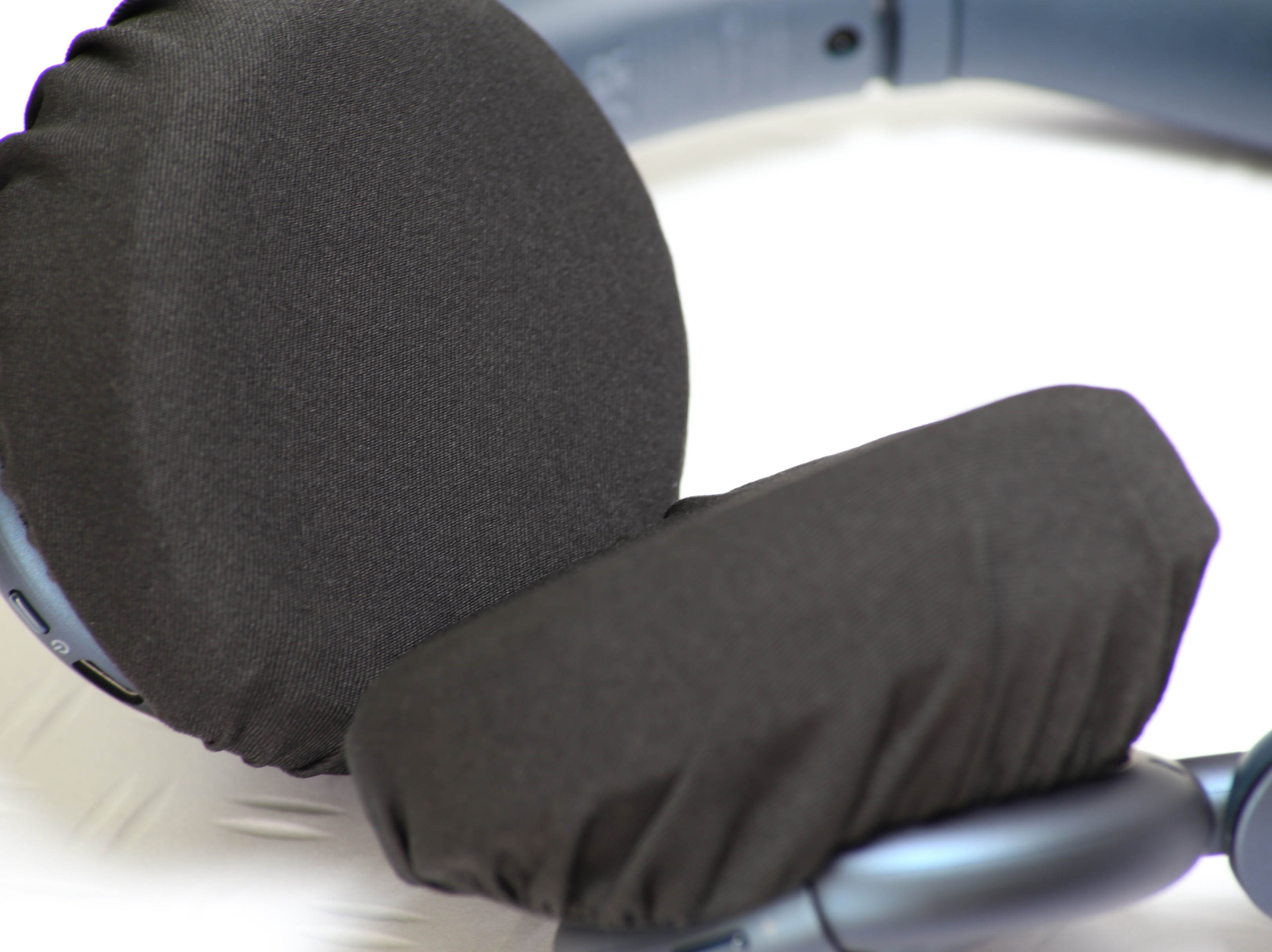 パッケージを開けるとイヤーパッドが2組。画像以外に滑り止めのようなものも入っていました。手触りはサラサラしていて伸縮性あり。イメージ画像ではややテカりがありますが実物はなし。ビーズクッションの表面に使われているような素材です。粗利益率高そう・・・