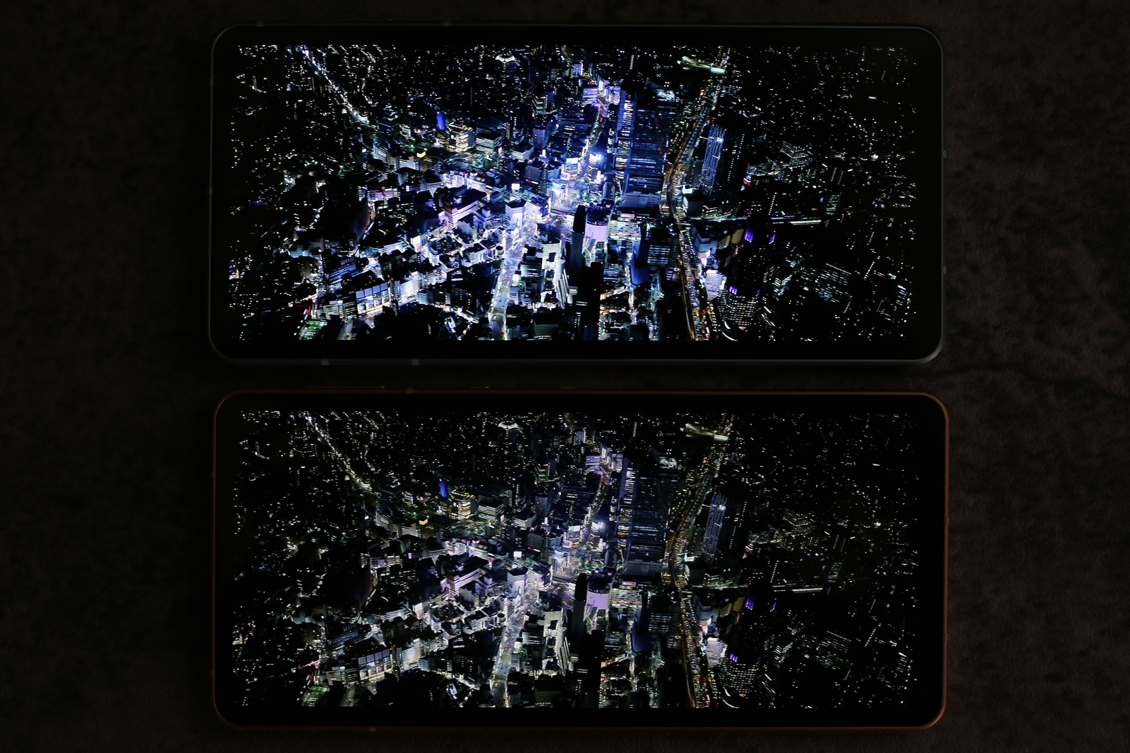 | 画面 | サイズ:6.1インチ 種類:IGZO有機EL 表示色:10億色 解像度:1080×2432ピクセル ピーク輝度:1,300nit コントラスト比:1,300万:1 | サイズ:6.1インチ 種類:IGZO有機EL 表示色:10億色 解像度:1080×2432ピクセル ピーク輝度:1,300nit コントラスト比:1,300万:1 |
