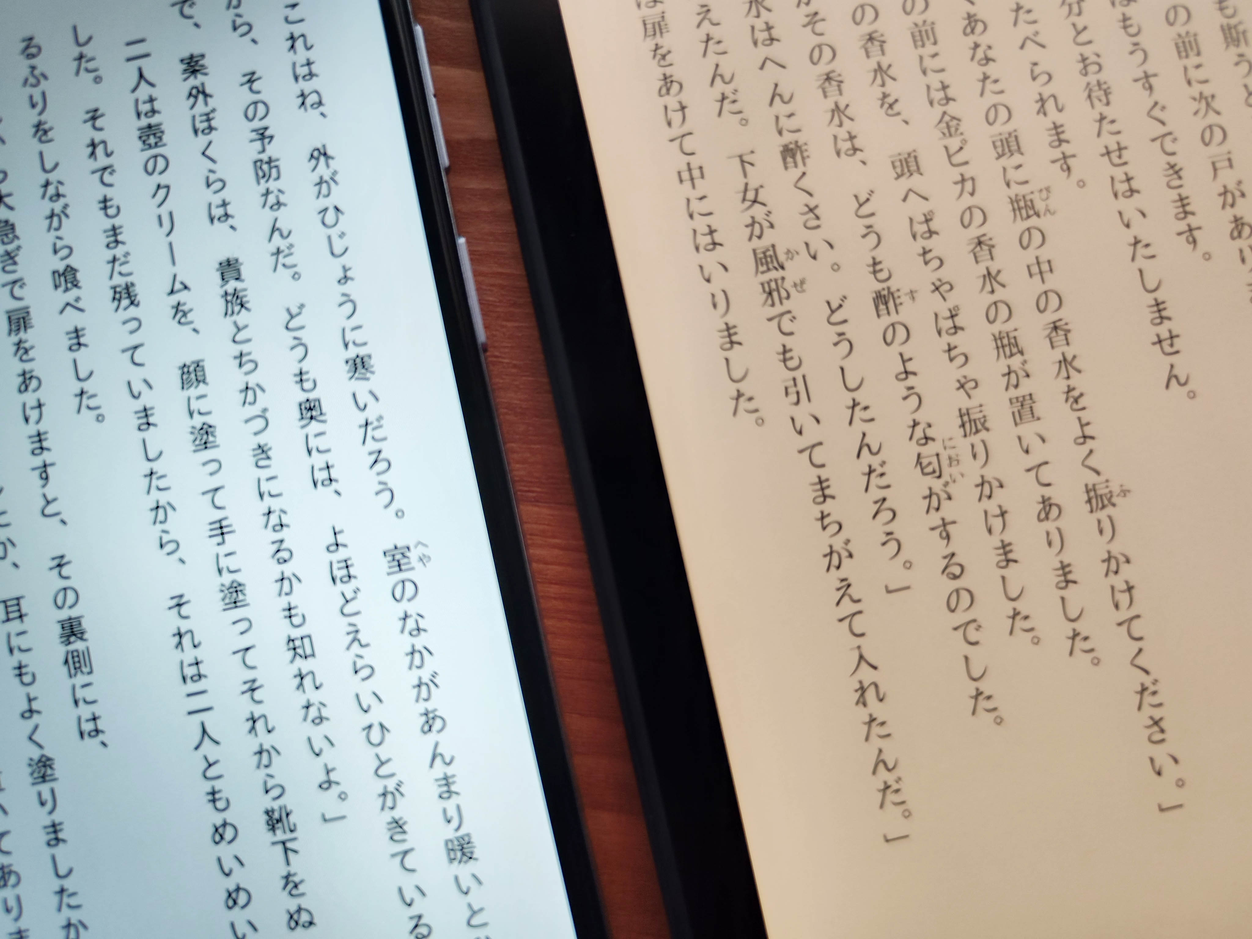 Kindleシリーズはライトが直接目に届かず、蛍光増白剤も使用していません。よって『眠る前に本を読むツール』として向いているのは間違いなし。