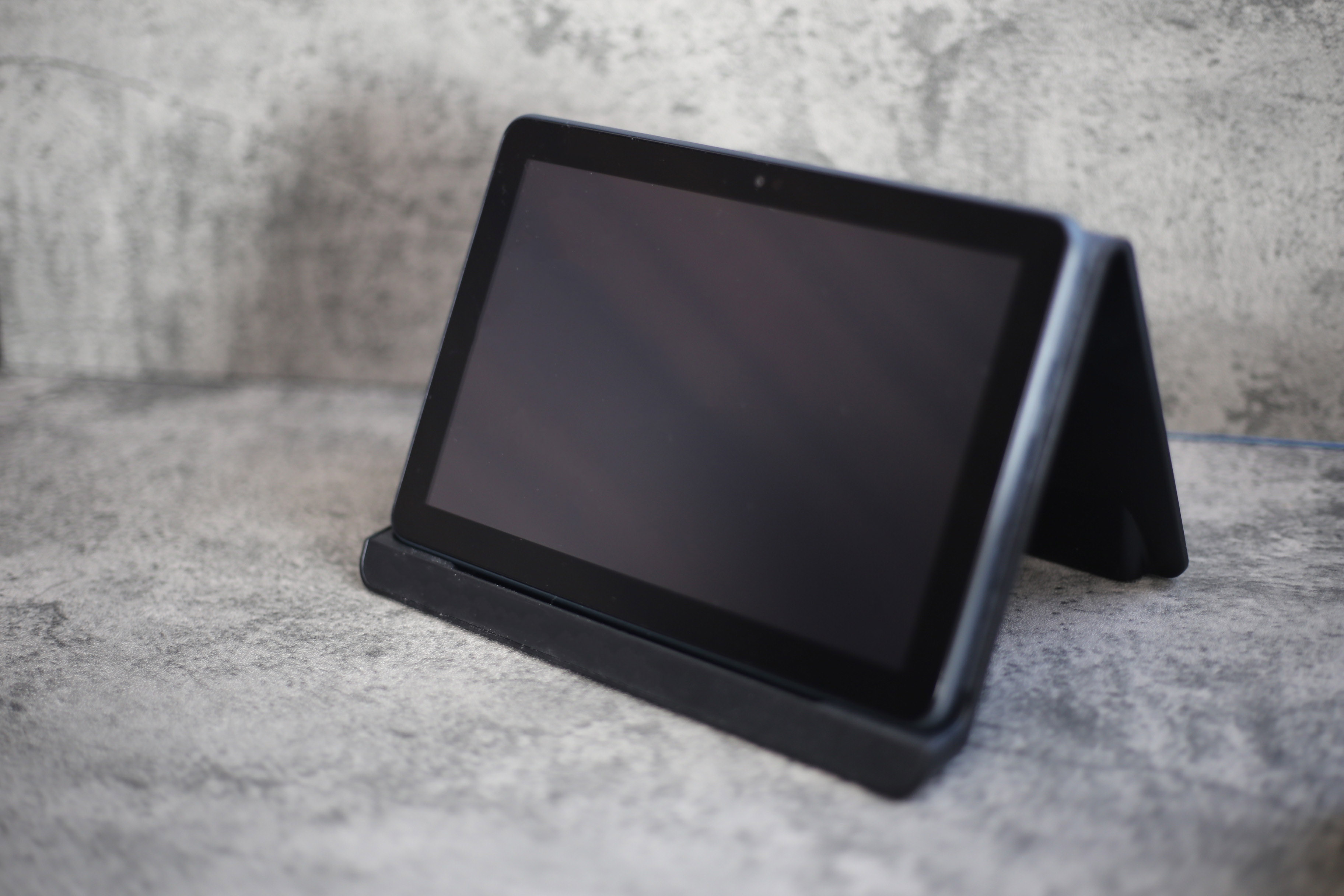 お風呂で2台を使いはじめて2ヶ月程度経過。検証のことなど忘れ、お風呂タイムを楽しんでいました。その私を我に返す、Fire HD 8 Plusにとある変化が起こったのです。朝起きた時点で画面が点灯しない状態に(湯船に落としたり大量のお湯がかかるといったことはなし。お風呂から出た時は問題なく動作)。
