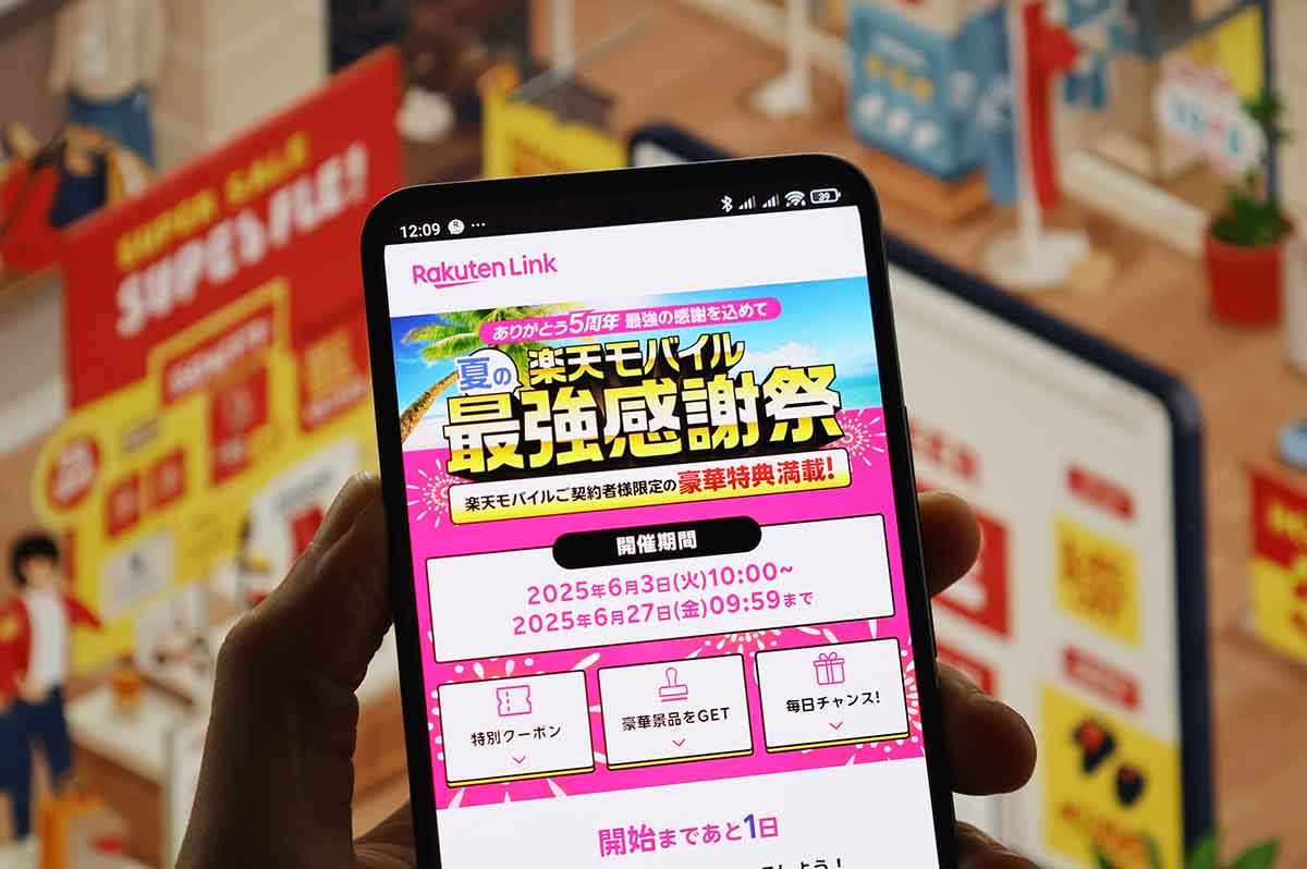 2025年6月3日午前10時から、楽天モバイルが『夏の楽天モバイル最強感謝祭(第1弾)』をスタート。『Rakuten最強プラン契約者(クーポン獲得の2日前までに契約している必要あり)』には、楽天市場で利用可能な最大『3,000円OFFクーポン』が配布されています... キャンペーン