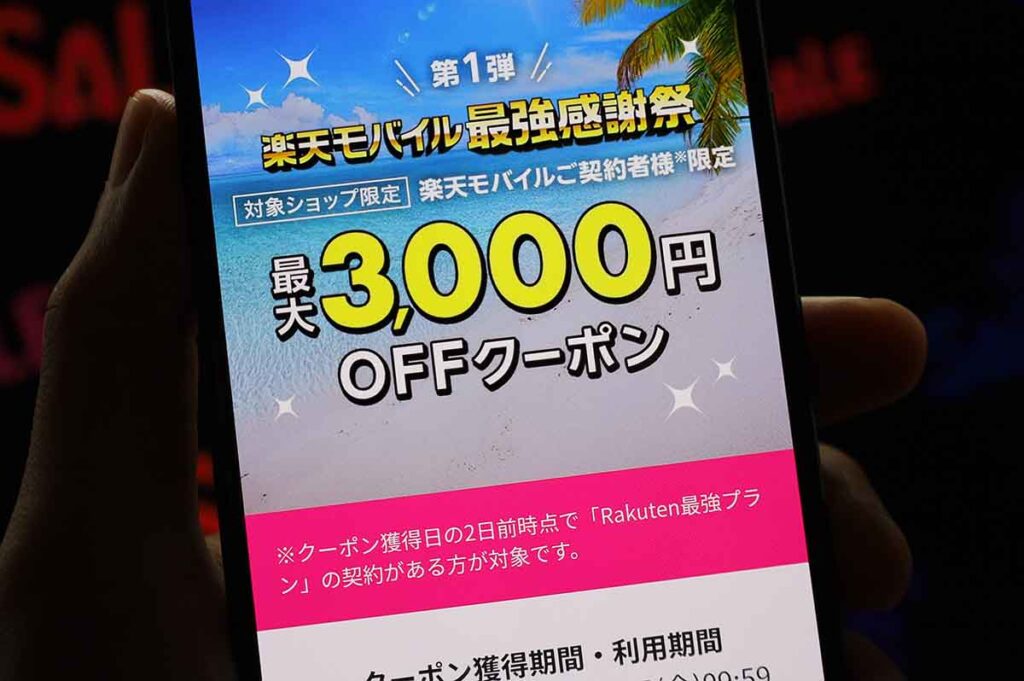 【朗報】楽天モバイル最強感謝祭で超人気『3千円OFFクーポン』復活!上限リセットで1人合計『2回利用』可能。急げ!