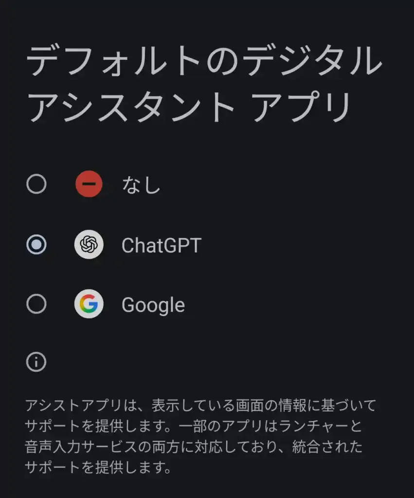デフォルトのデジタルアシスタントアプリを『ChatGPT』に。