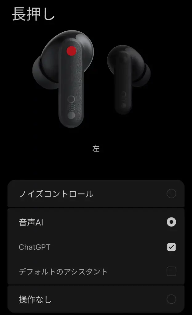 長押しを『ChatGPT』に指定すると、赤●部分を長押しすることでChatGPTが起動。CMF Budsはイヤフォンマイクなので、音声モードにも勿論対応。