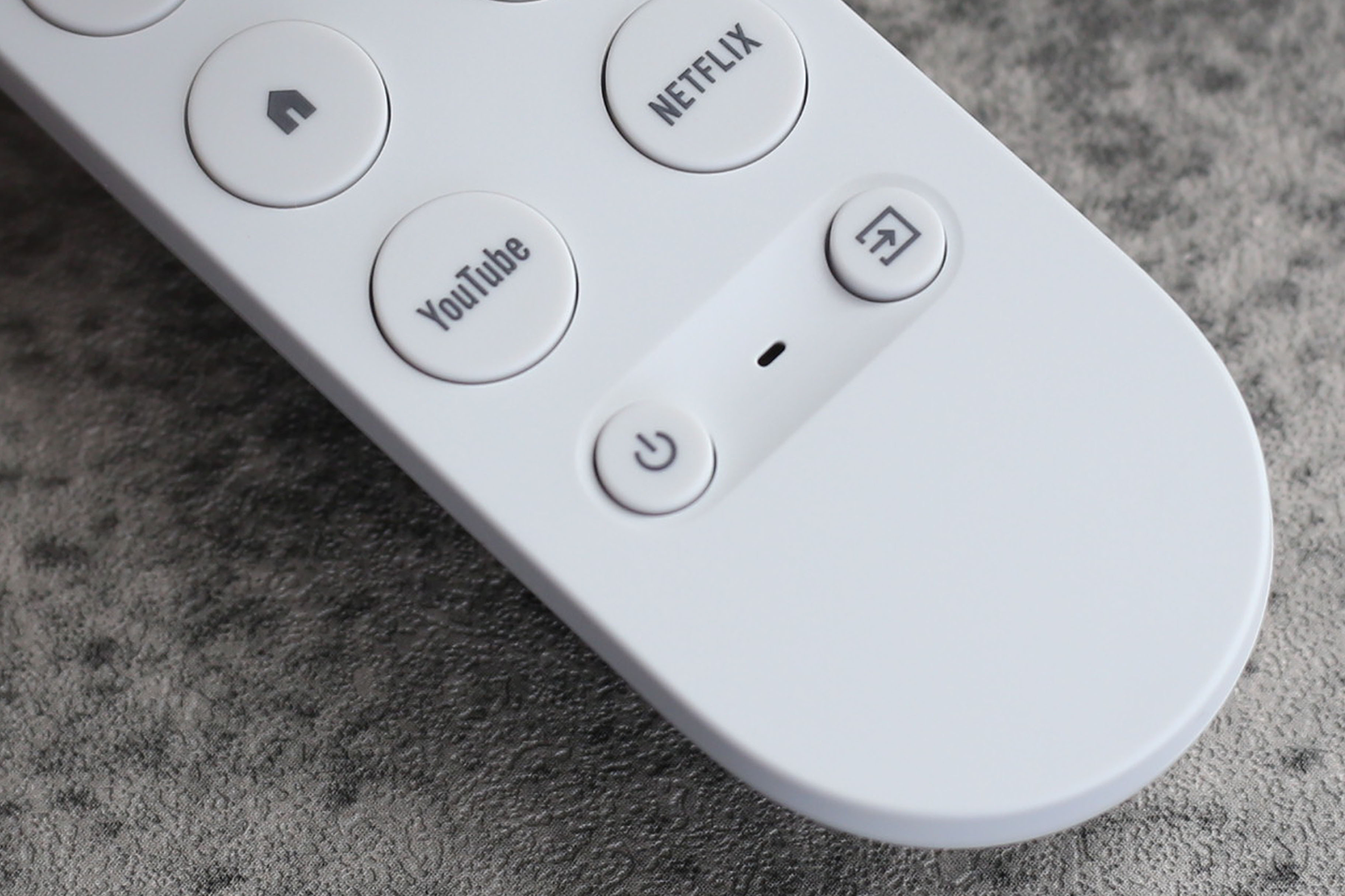 Chromecast with Google TVのリモコンにも同様の電源ボタンが。このボタンの機能がFire TV Stickと同様であれば、テレビとして使う場合はやはり『スマートプラグ』の導入が必要に。両デバイスの適正を見極める上でとても重要なポイント。