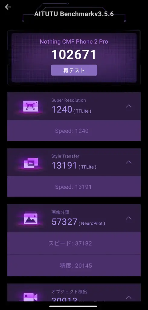 CMF Phone 2 Pro(Dimensity 7300 Pro 5G) のAITuTu Benchmark(V3.5.6)スコア実測結果