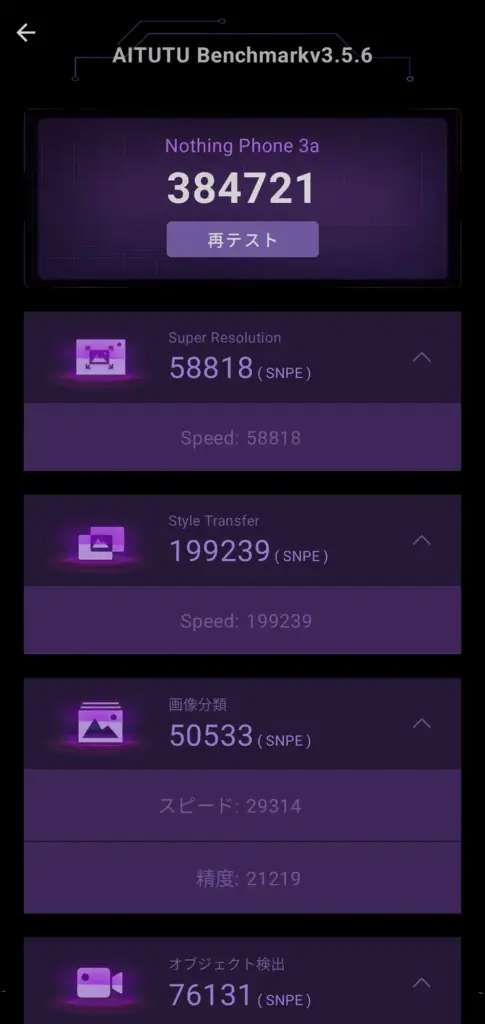 Nothing Phone 3a(Snapdragon 7s Gen 3)のAITuTu Benchmark(V3.5.6)スコア実測結果