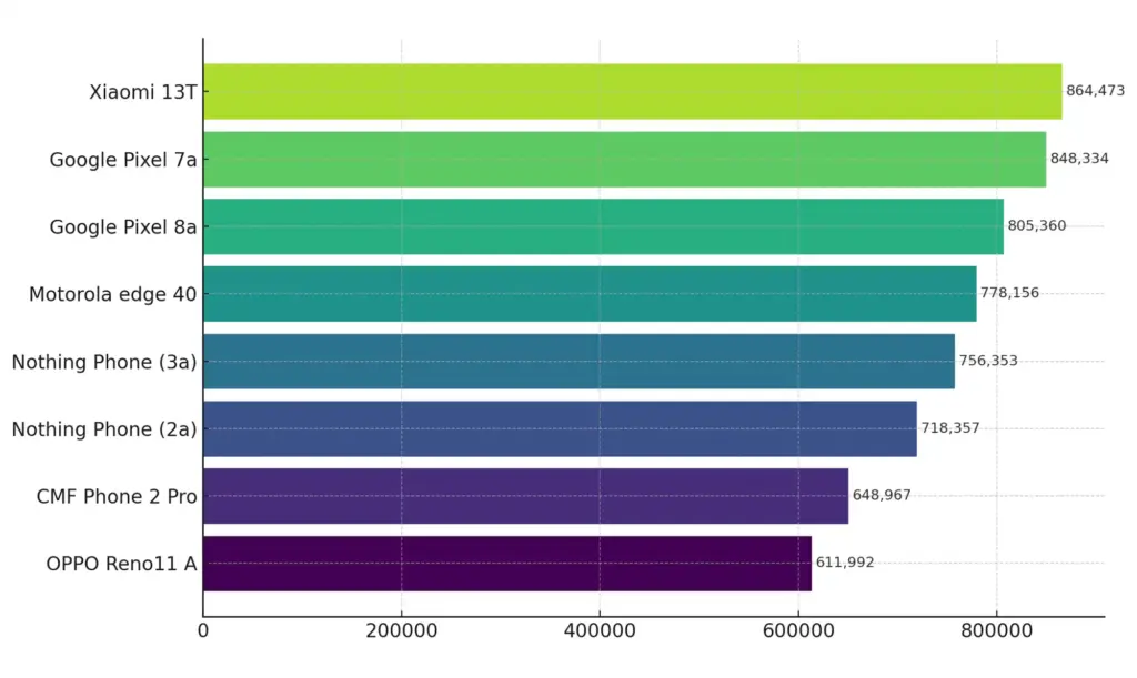 CMF Phone 2 Proに近い性能を持つスマートフォンのAnTuTu Benchmarkスコア(ver.10)