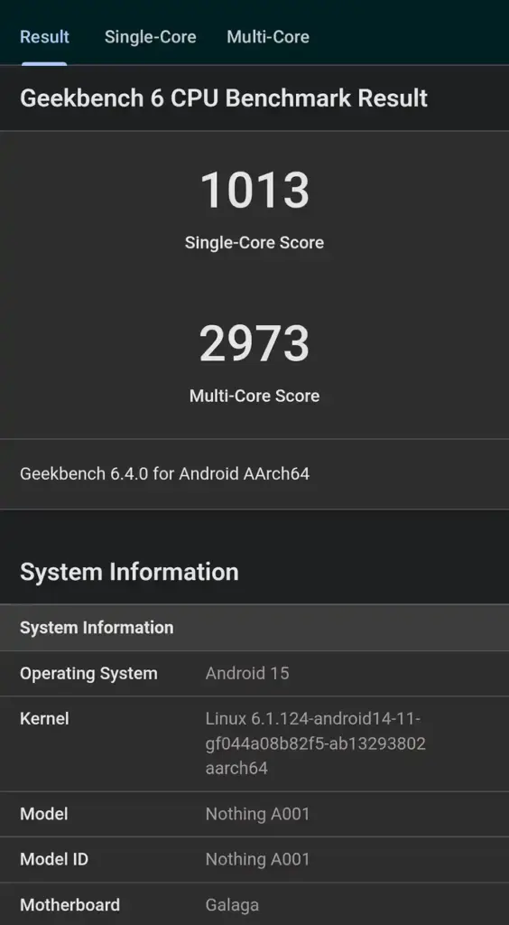 Nothing Phone 3a(Snapdragon 7s Gen 3)のGeekbench6スコア実測結果