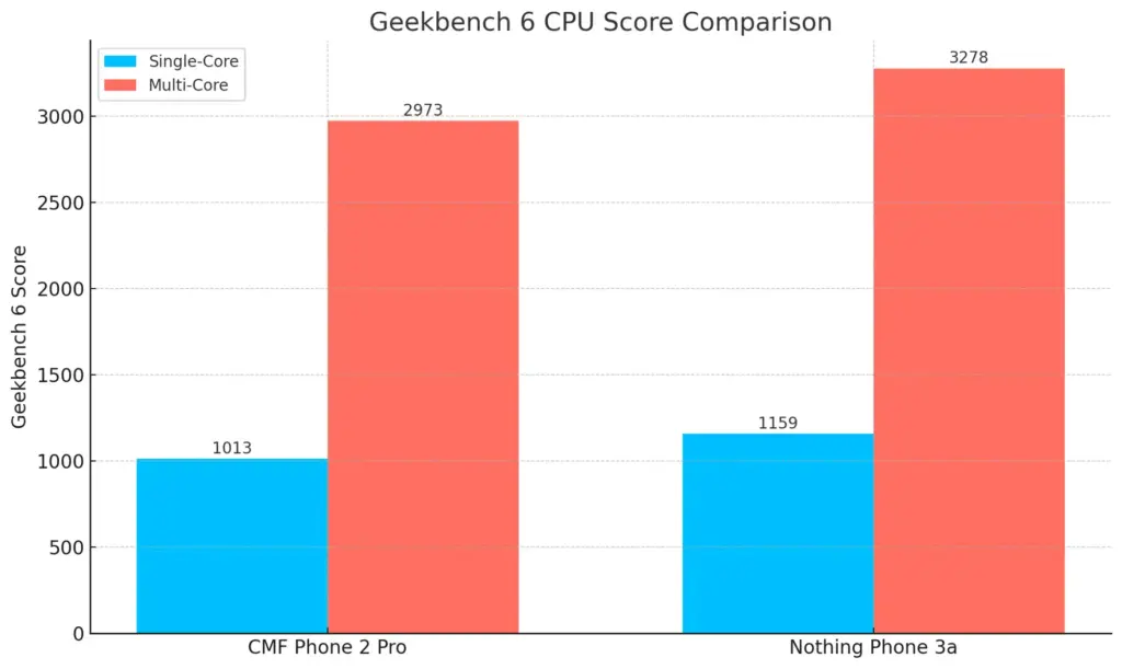 CMF Phone 2 ProとNothing Phone (3a)のGeekbench6(CPU)実測結果