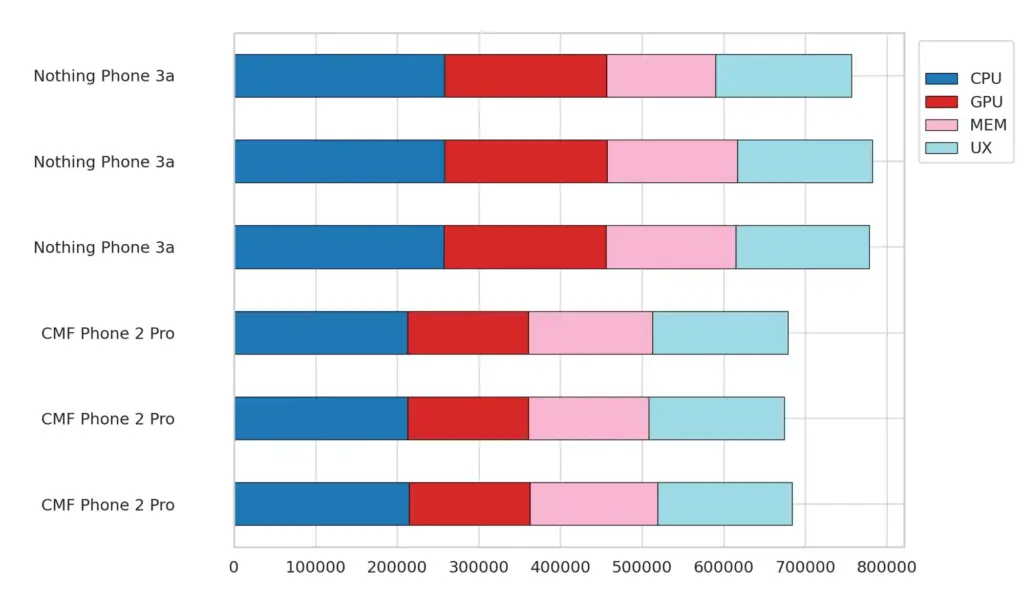 CMF Phone 2 ProとNothing Phone (3a)のAnTuTu Benchmark(V10.5.2)実測結果
