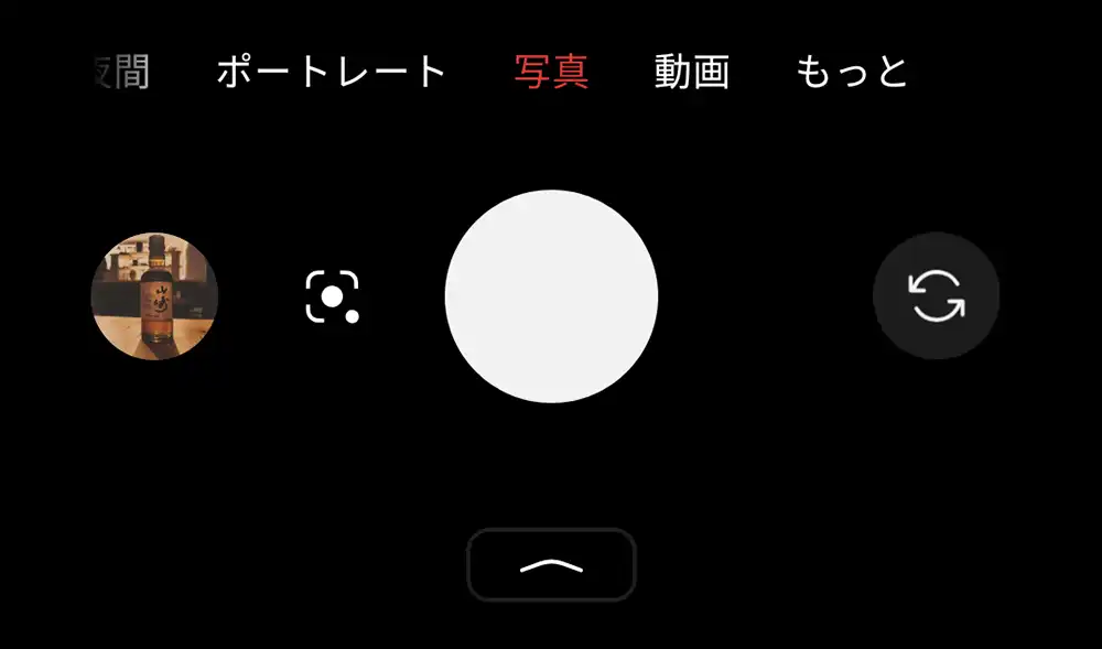 フィルタを適用出来るのは『写真』『ポートレート』『夜間』。撮影画面右上の『∨』から『フィルタ』をタップ。