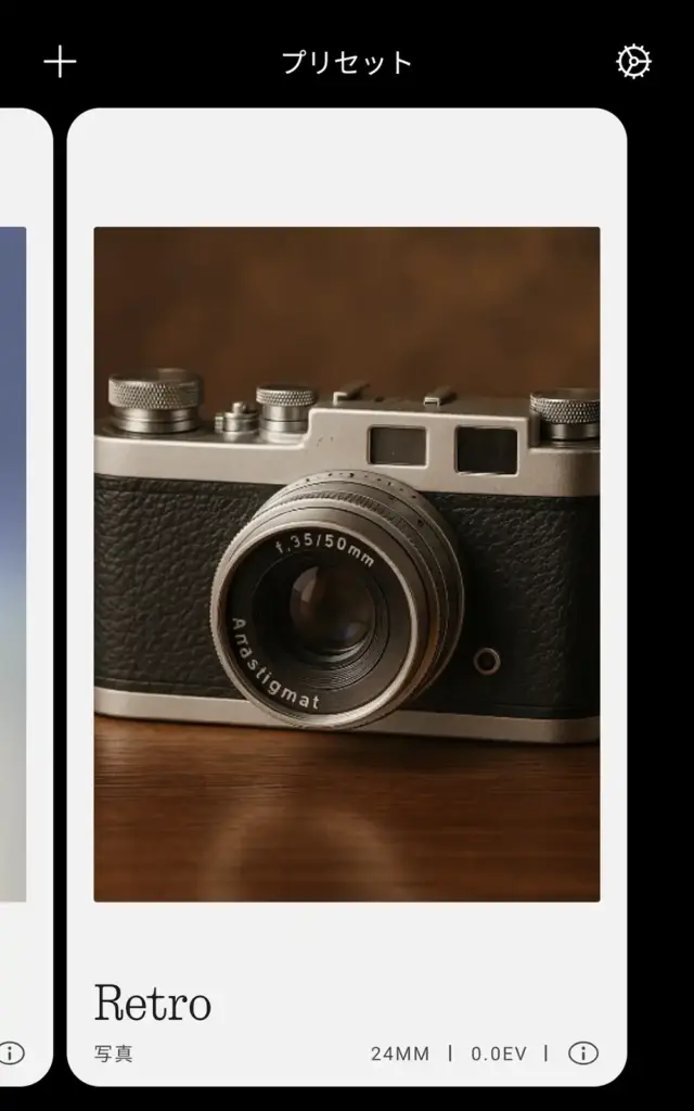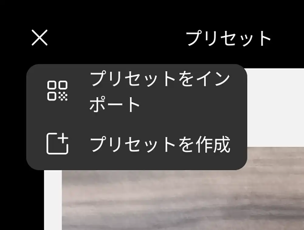 続けて左上の『+』マークから『プリセットを作成』をタップ(QRコードを使ってプリセットをインポートすることも出来る)。