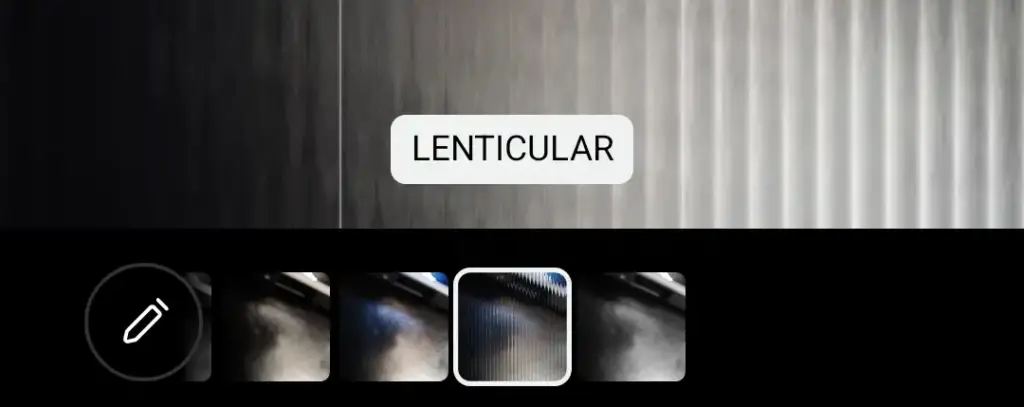 フィルタ一覧が並んだ一番左に『ペン』のようなアイコンが表示されるのでタップ。
