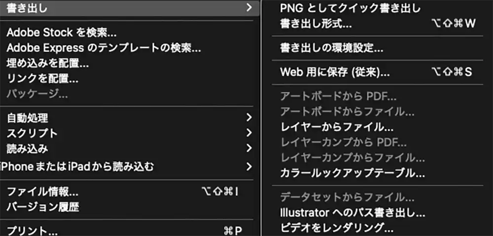 『ファイル』→『書き出し』→『カラールックアップテーブル』の順に選択。