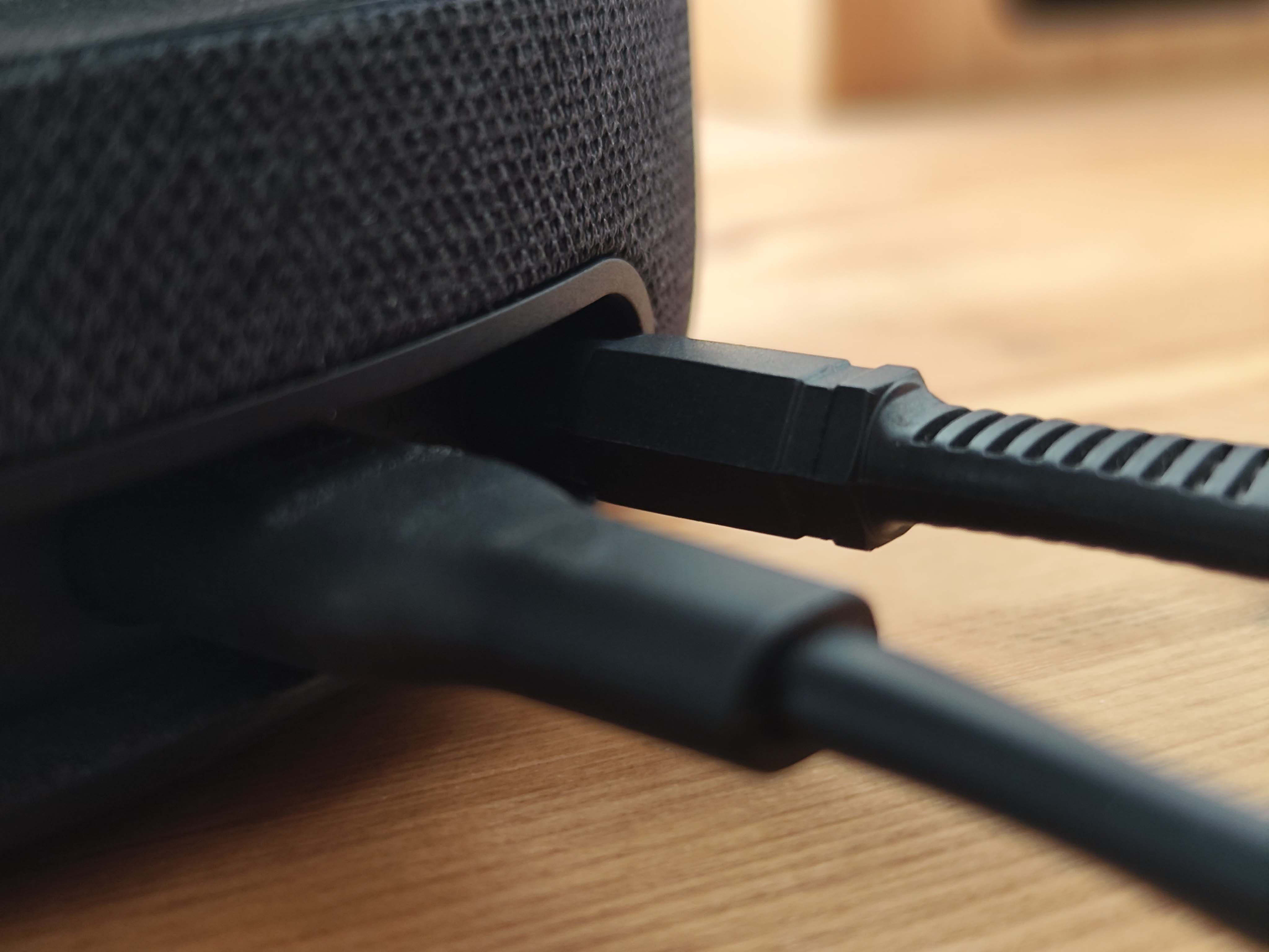 新しくスピーカーを購入しようとも考えたのですが、すでに所有しているEcho Studioが『ライン入力』に対応していることを思い出しました。有線(AUXケーブル)でパソコンとEcho Studioを接続してみるとこれがドンピシャ!