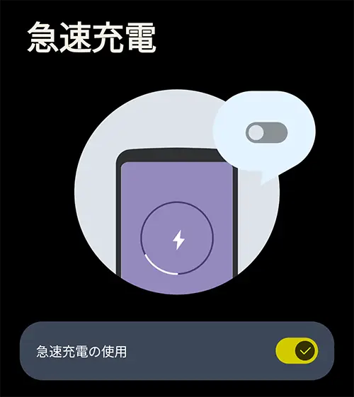 設定→バッテリー→急速充電