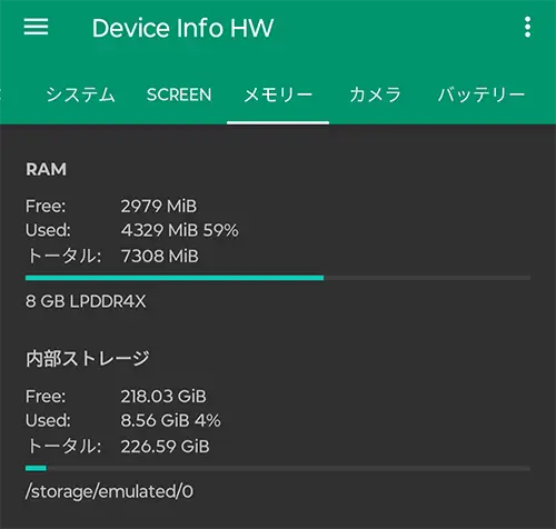 ちなみに、アプリの整理を行った状態でメモリの使用率は『59%』(起動中のアプリはなし)。