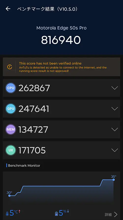 edge 50s pro(Snapdragon 7 Gen 3)のAnTuTu Benchmarkを実測