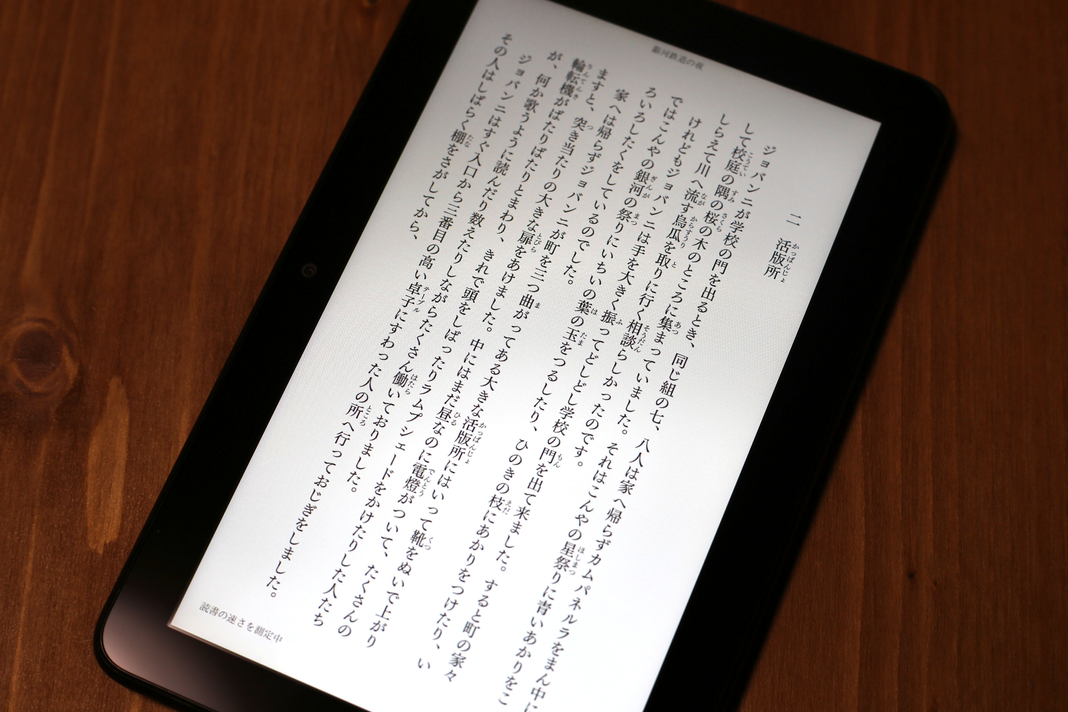 対談形式の本などは『(笑)』を『カッコワライ』とそのまま読んでしまったり、発音がややぎこちない部分もありますが、ディスプレイを見づらい満員電車の中や、車を運転しながらでもラジオ感覚で本の内容を知る事が出来る。この機能、知らない人が意外と多いので、Fire 7を購入したら是非試してみてください。