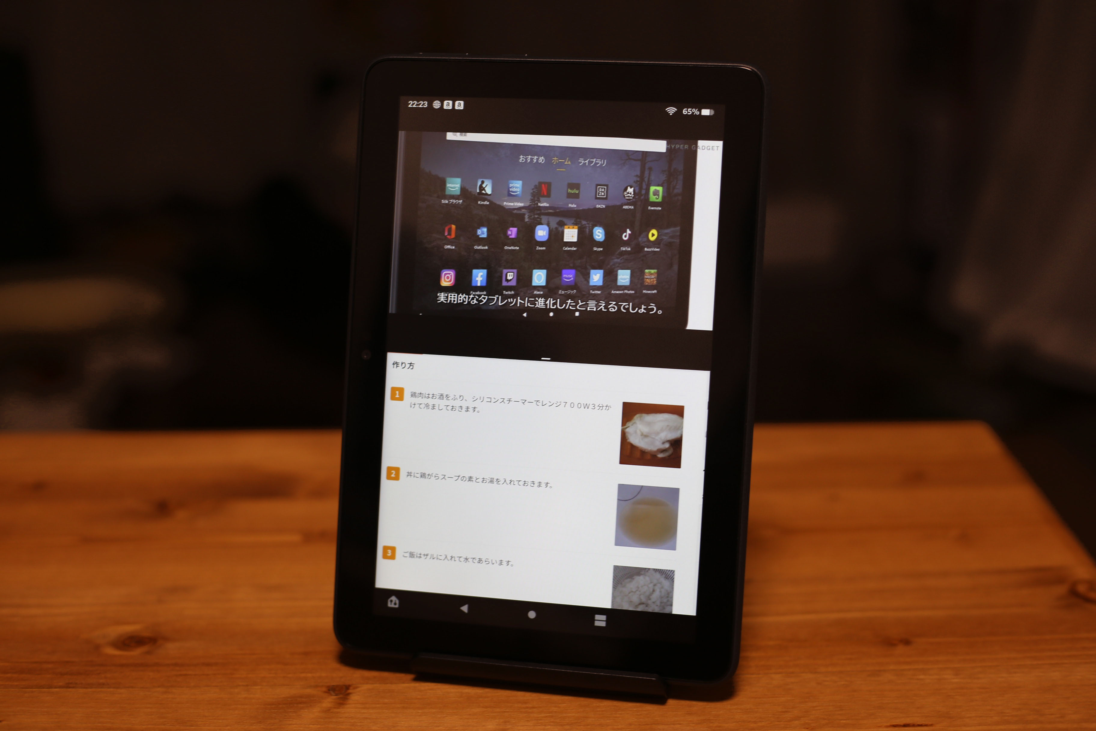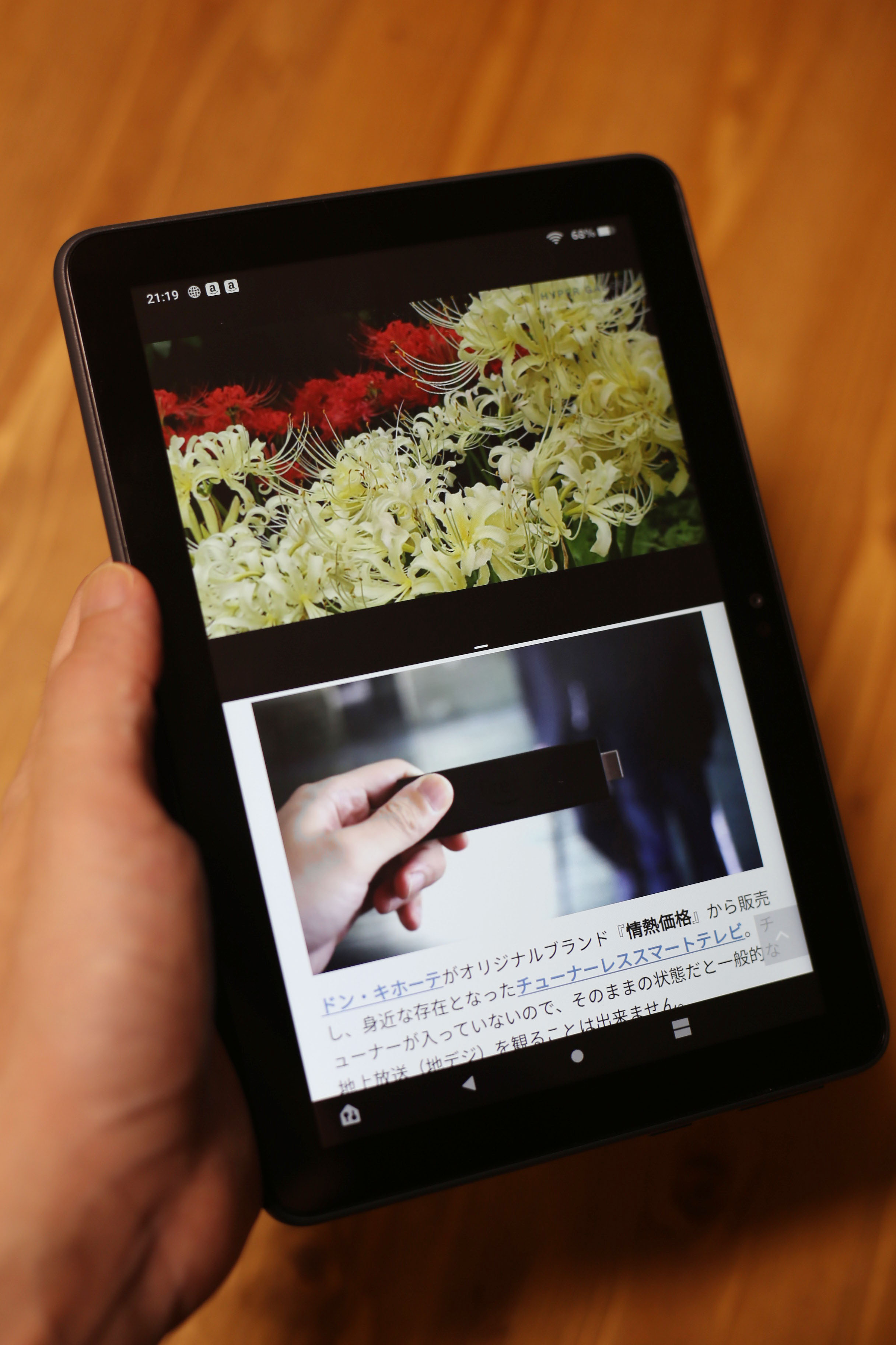 Fire HD 8とFire HD 8 Plusは『16:10』のアスペクト比を採用。縦に持った状態で横幅に余裕があります。YouTubeであれば分割してもスマートフォンより少し小さい程度の表示。実用的な見やすさです。