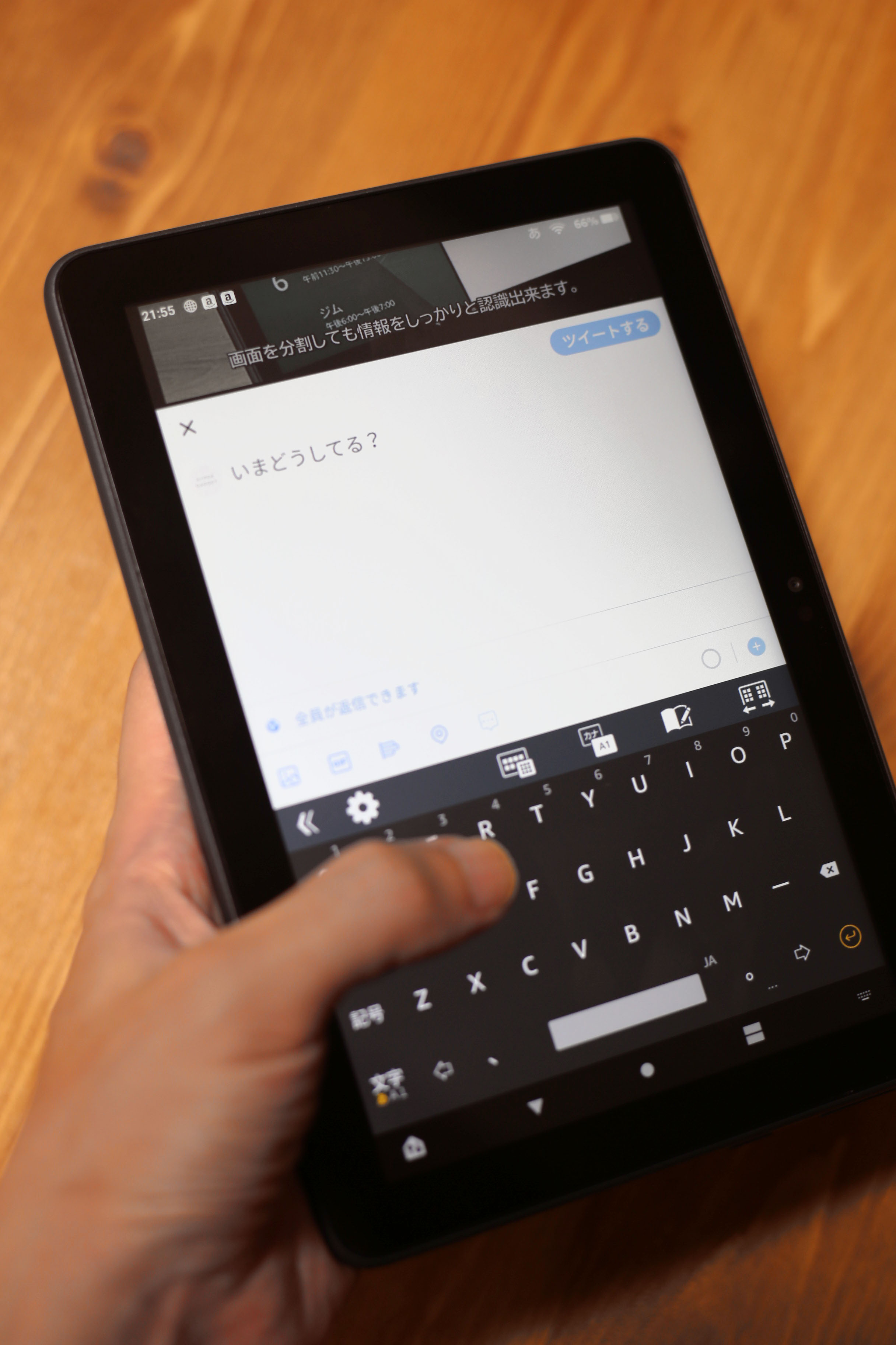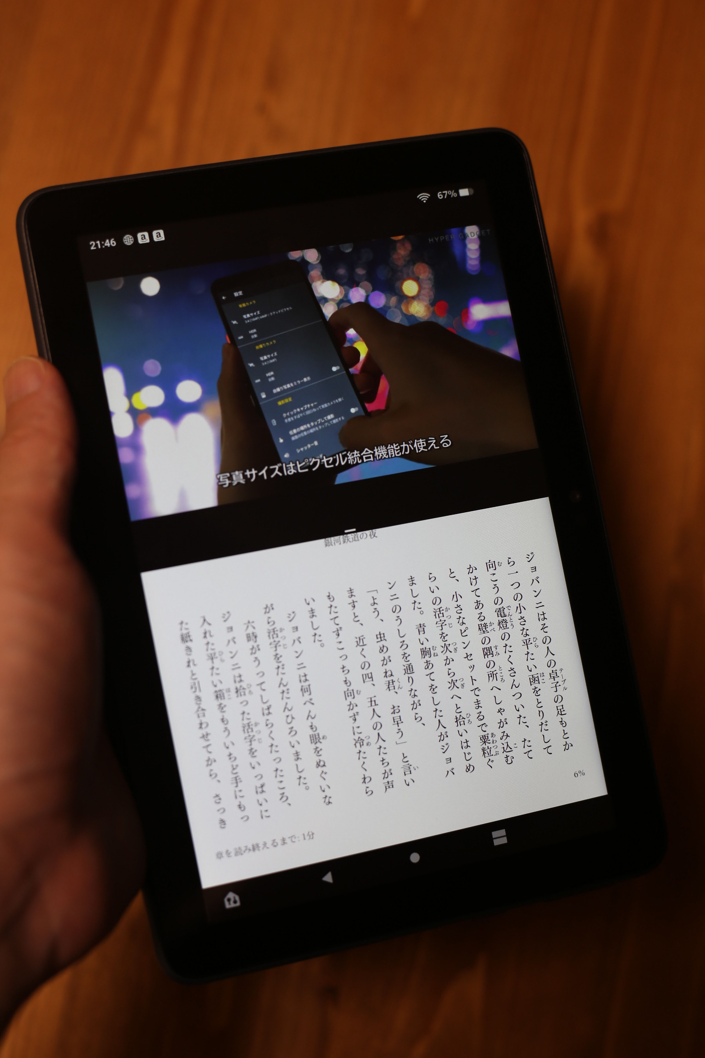 7インチのFire 7ではサイズ的に小さく解像度も足りない。Fire HD 10 だと大きすぎてかさばる。8インチの『Fire HD 8』『Fire HD 8 Plus 』であれば、家の中でも外でも2画面で使える。本当の意味での『2Way』仕様。時間が足りないと嘆いている人にお勧めな『時間有効活用アイテム』です。
