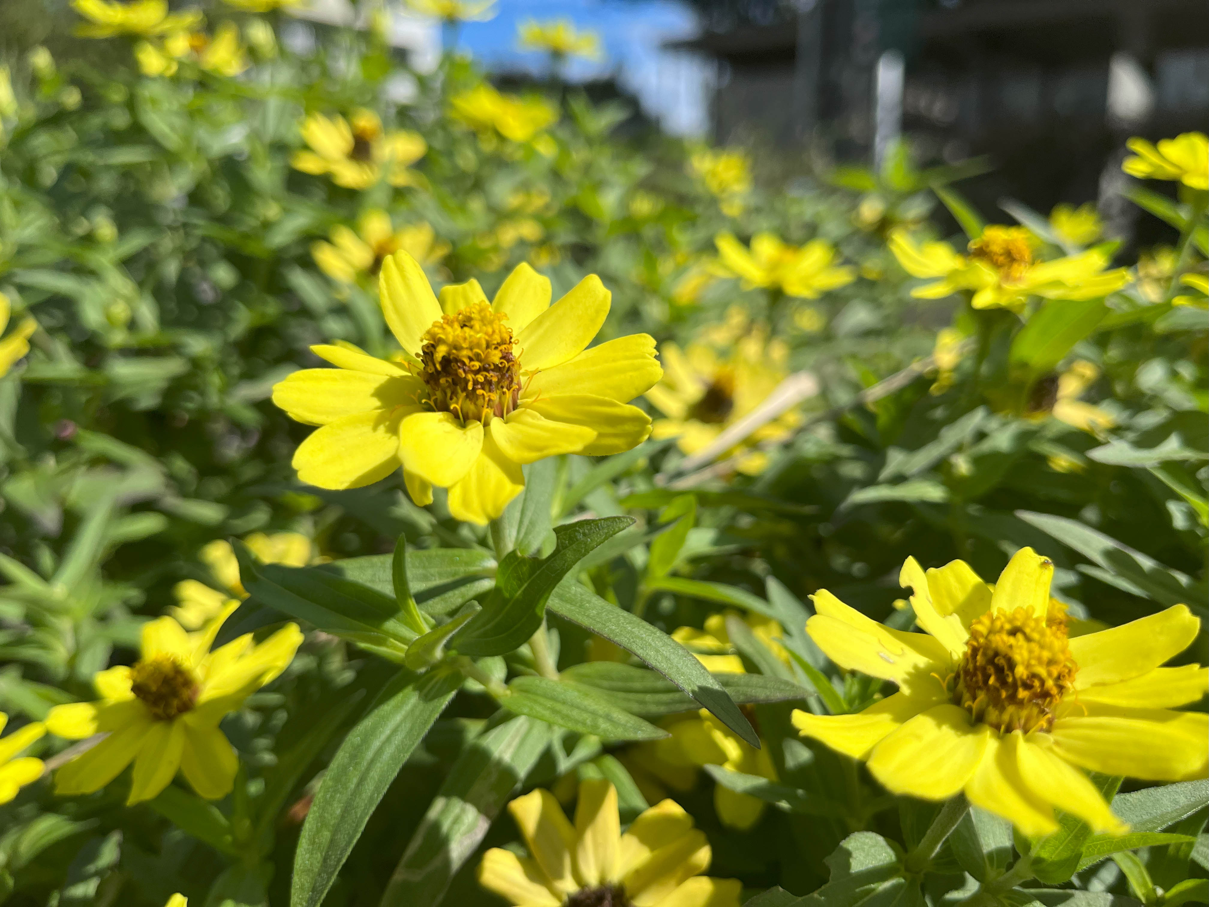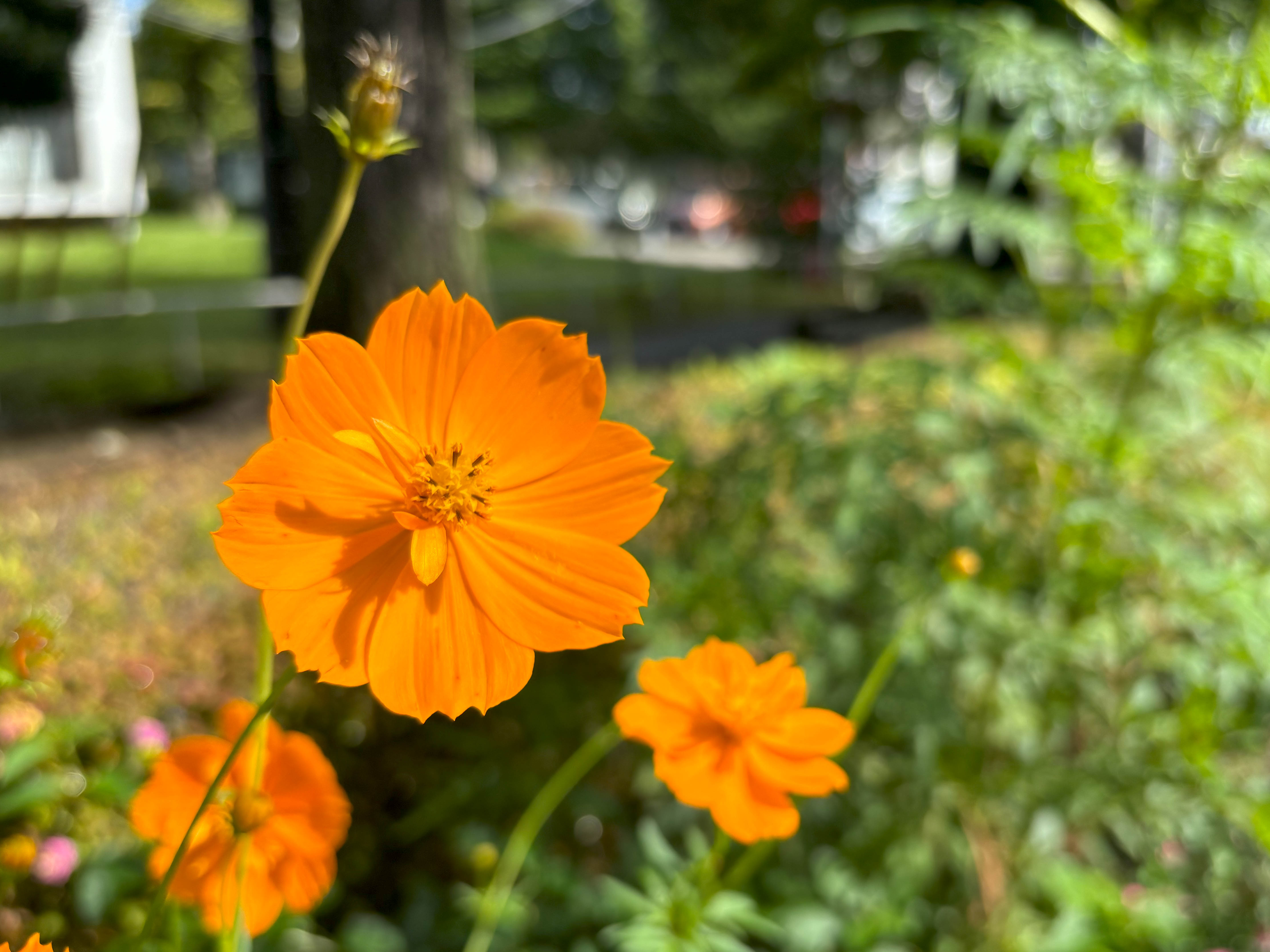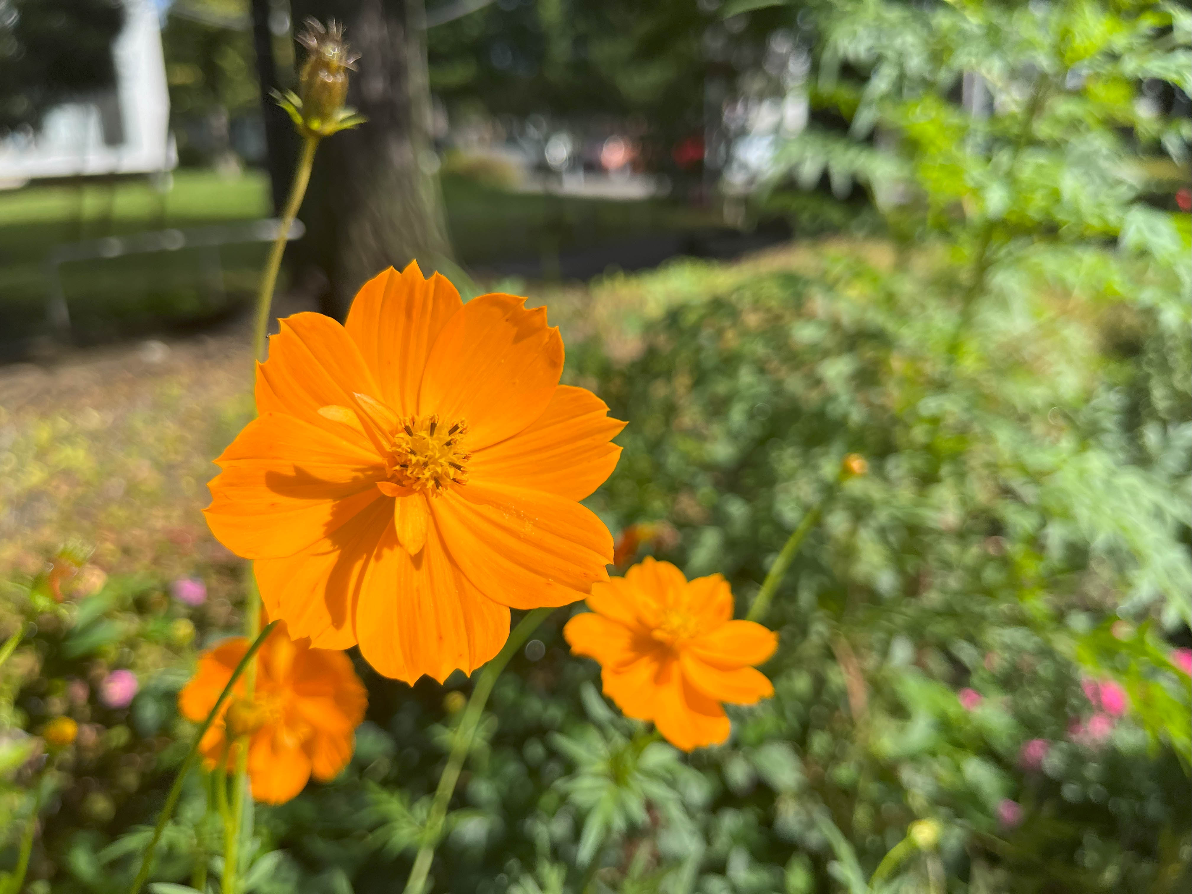 『オレンジ』『黄色』『ピンク(紫?)』『白』が主色の花々。iPhone 13は濃淡が足りずに平面的。花びら1枚1枚の違いも分かりづらく、どちらかと言えばCGっぽい仕上がり。私が思う『iPhoneらしい画像』です。