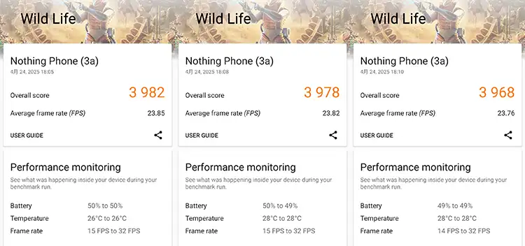 Nothing Phone(3a)の3DMark(Wild Life)スコア