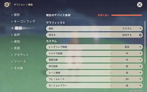 iPlay 70 mini Ultraで原神をプレイ(室温29度)してみましたが、グラフィック設定『高』でまだ余裕を感じられるパフォーマンス。レンダリング精度を『最高』に変えても(負荷表示は赤くなる)目立った発熱やカクつきはありませんでした。電池の減りも緩やかで、想定していた以上の安定感。