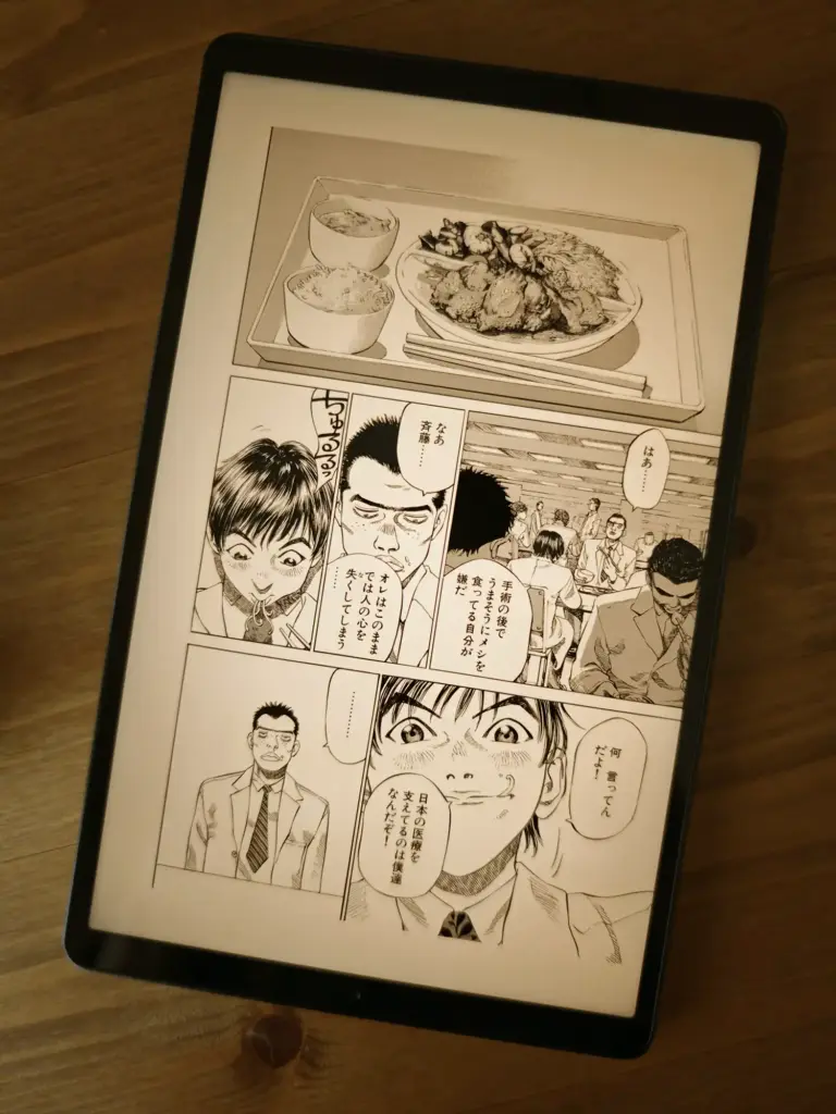 8.8インチの画面サイズは『漫画』を読むのに最適。横向きにして2ページ表示させても読める程度の文字サイズを維持。