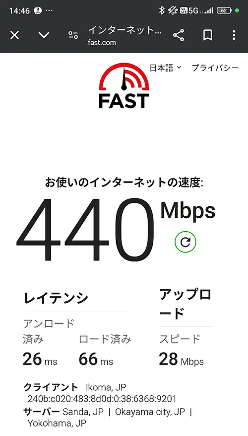まさかの『440Mbps』。大国主大神が宿っているのか!?流石にはやすぎるとバグを疑い再実測。