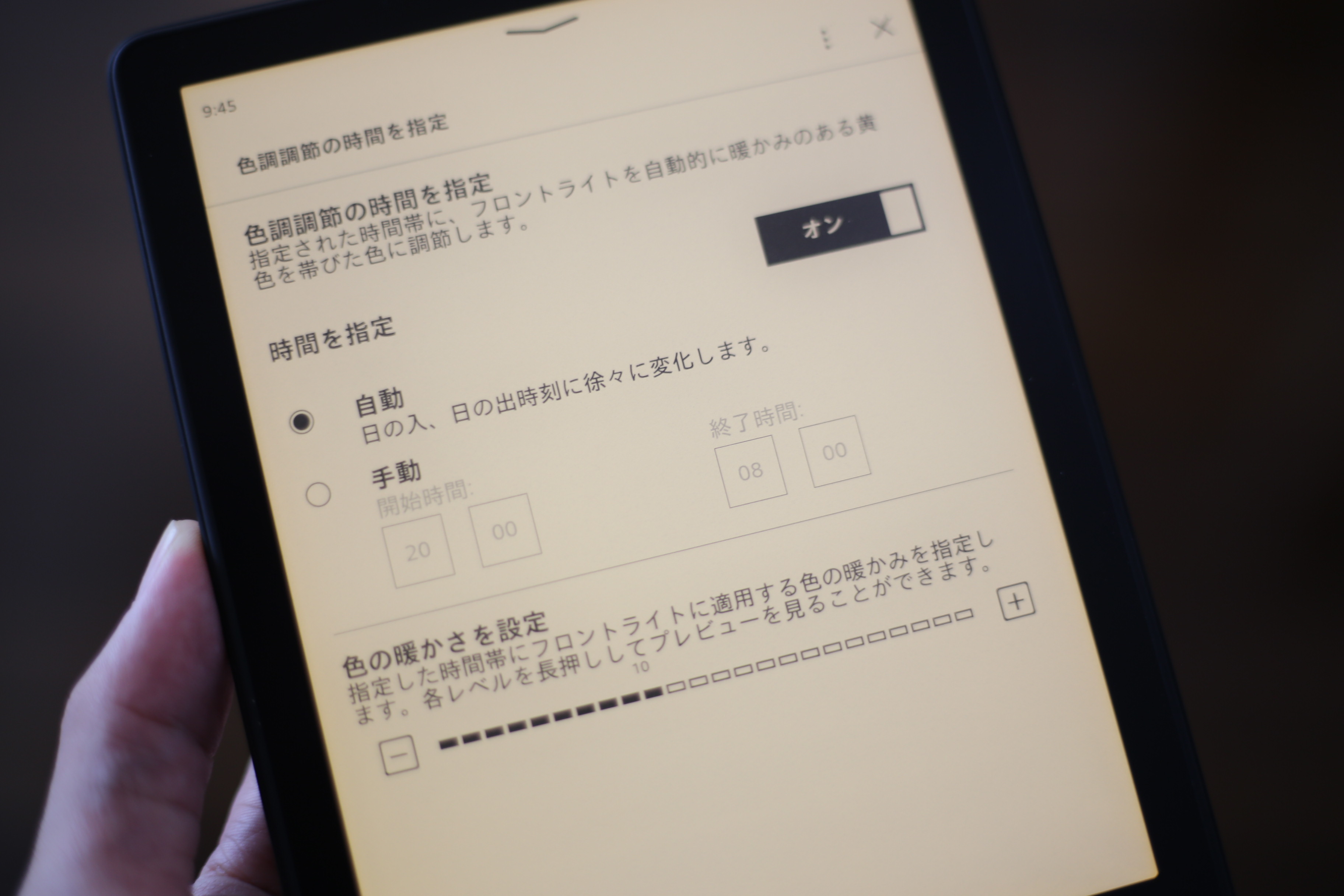 ちなみにKindle Paperwhiteには、時間に合わせて自動的に色温度が変わる機能が備えられています。恐らく新Kindleにも採用されているでしょう。