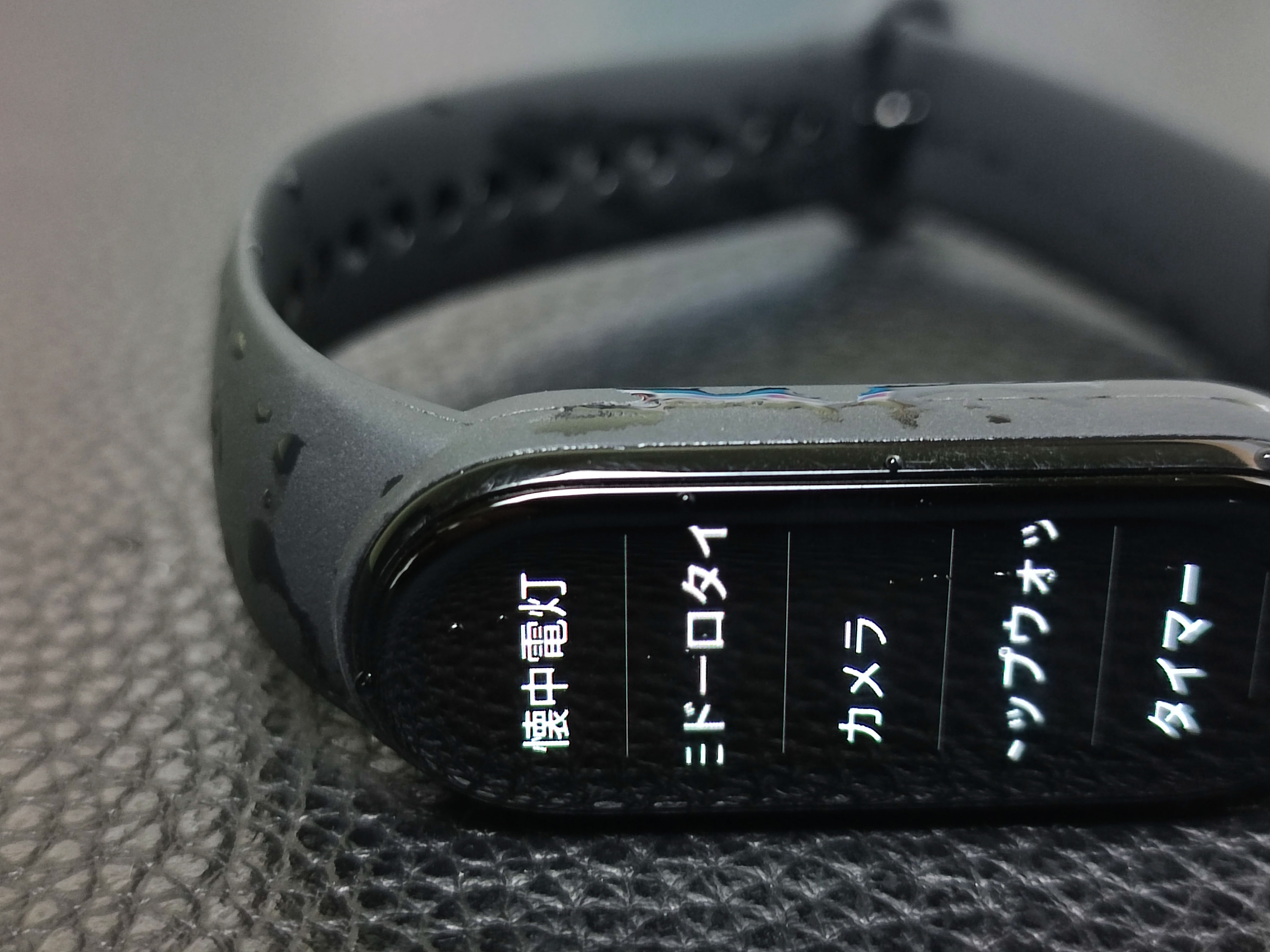 Mi Band 6では画面の表示領域が広がったので、懐中電灯としての使い勝手は中々のもの。暗闇で点灯させてみましたが、どこに何があるかをしっかりと認識出来るレベルです。夜帰宅して鍵穴の位置が分かりづらい時、急な停電時などにも活躍してくれるでしょう。時計がまたひとつ便利になりました!