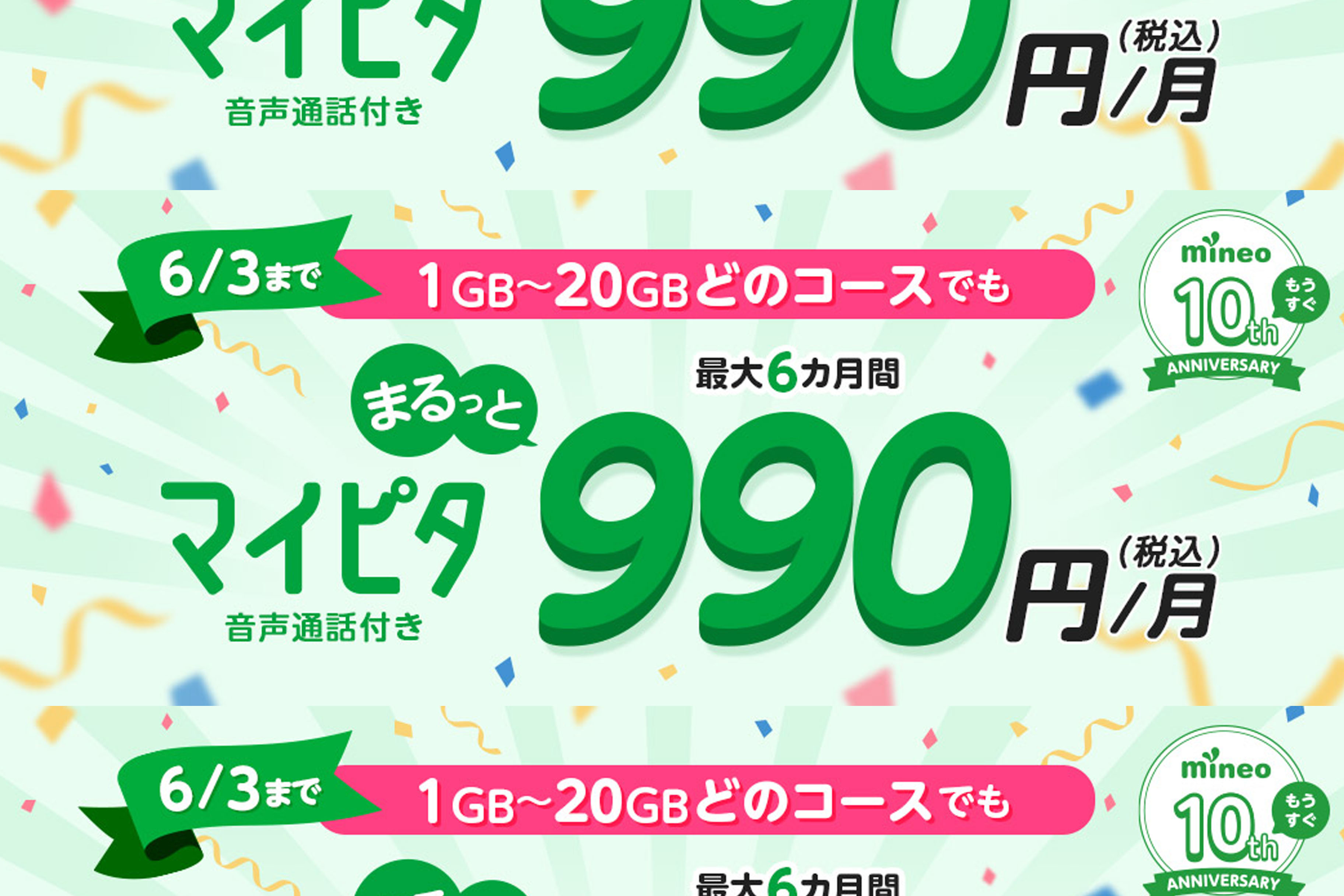 mineoで『マイピタ(デュアル)20GB(パケット放題Plus無料)』が最大6ヶ月間『990円』に!パスケットは...関西電力グループのオプテージは、『mineoサービス発表会 2024』の中で『平日お昼の通信品質を約5倍改善(2023年1月比較)』『ファンとくのアップデート(2024年2月28日...