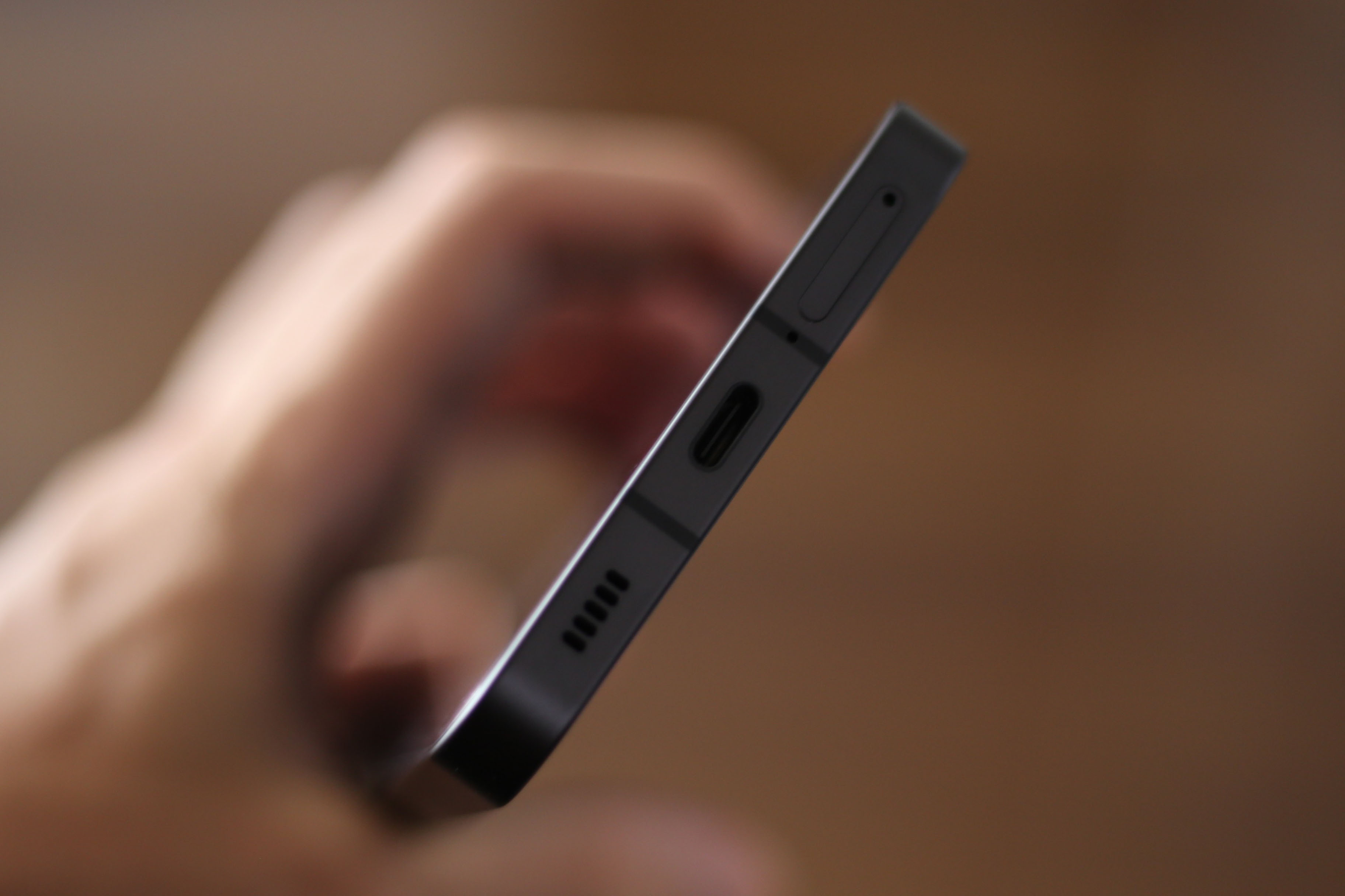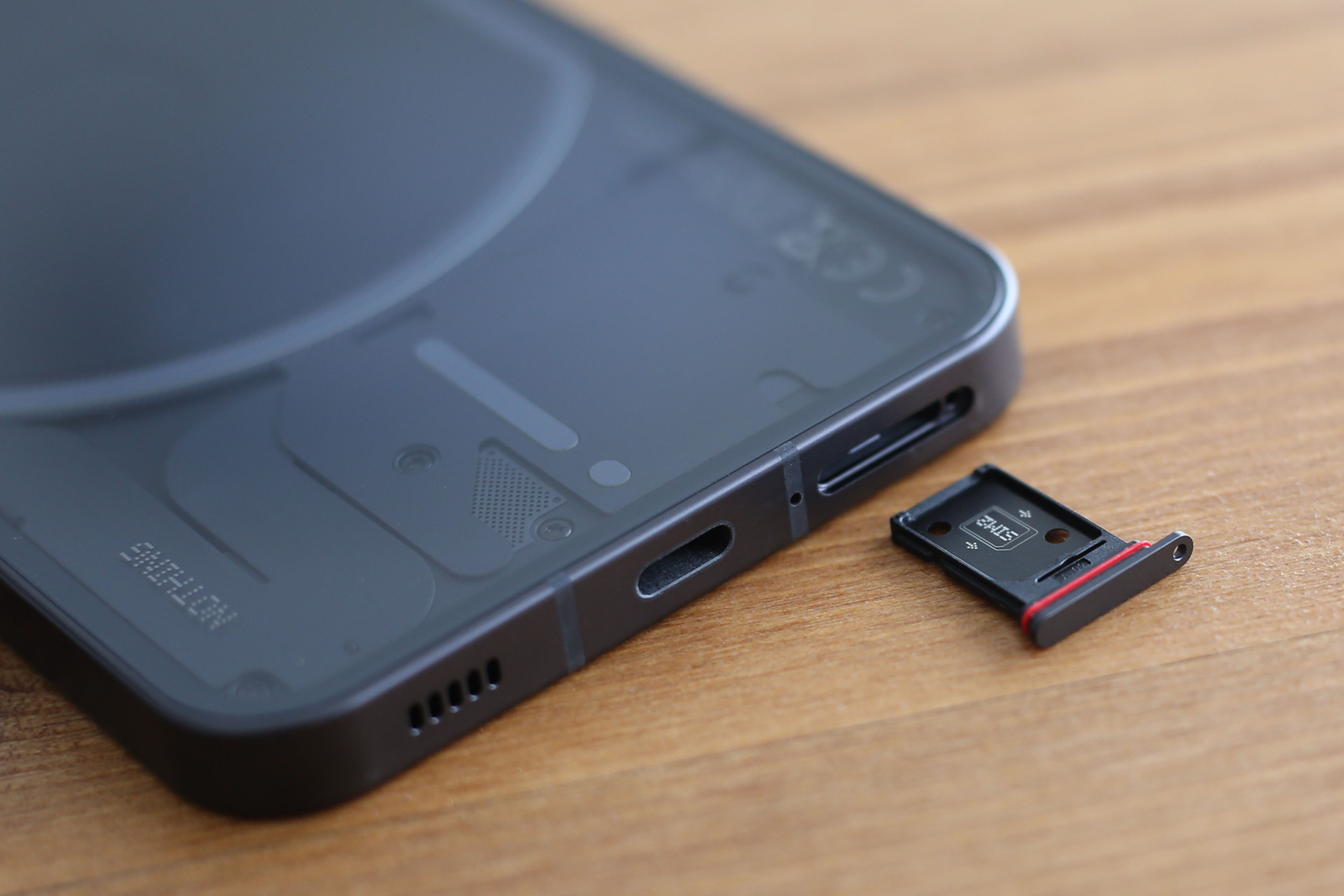 下部にはスピーカーホール、充電ポート、SIMカードスロットが整然と並んでいます。