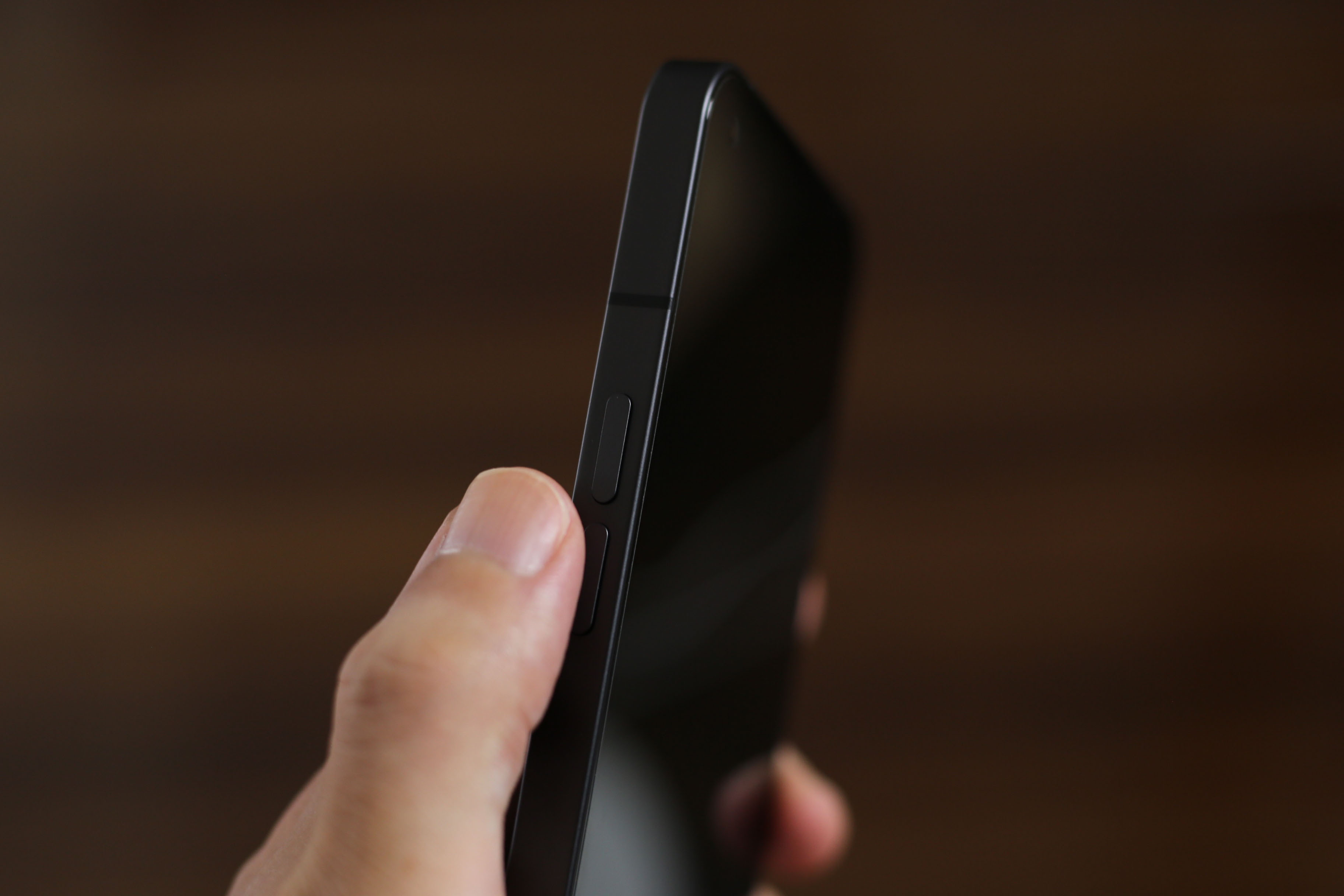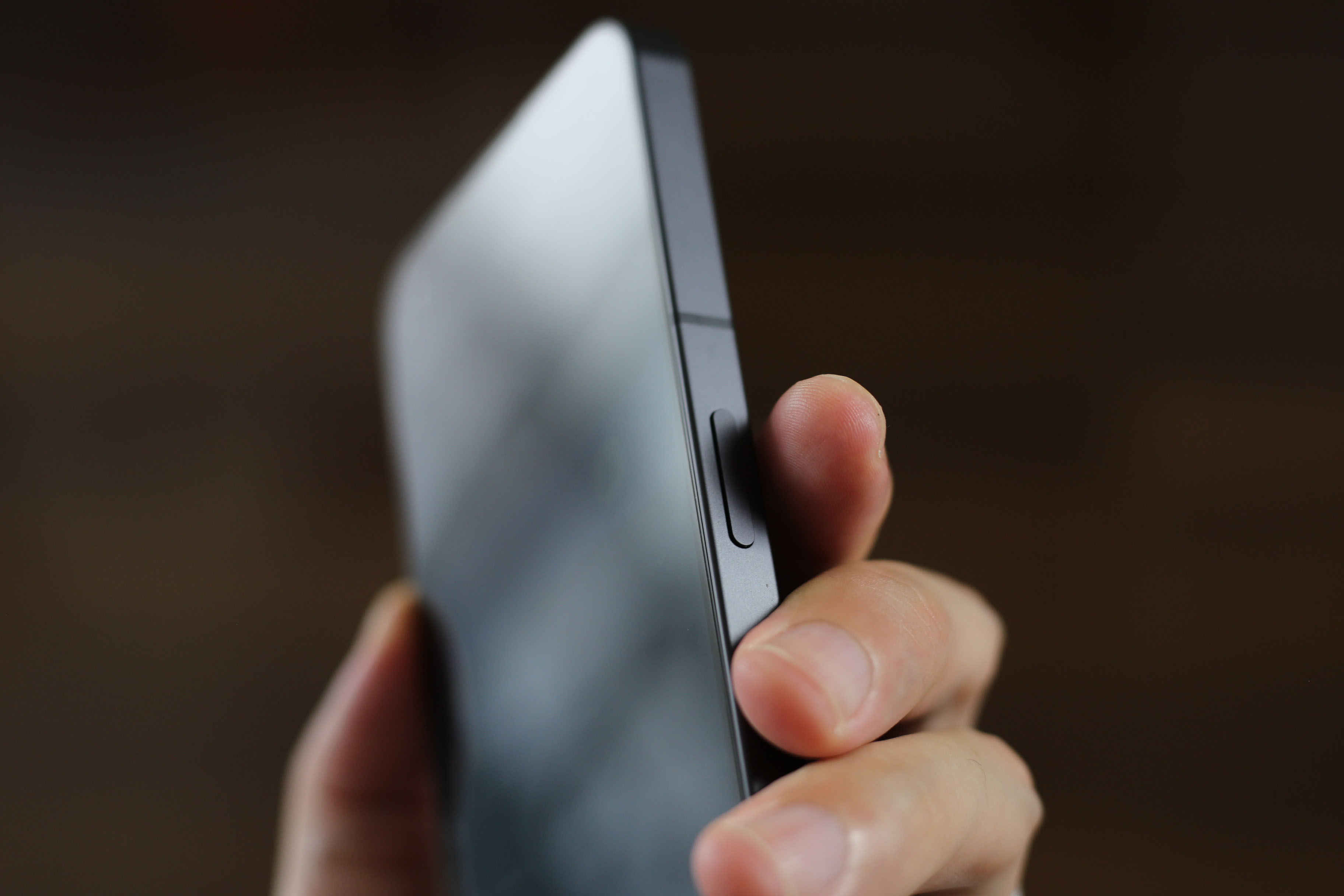 右側面には電源ON/OFFボタン。指紋認証センサーは側面ではなく画面内に備えられています。音量+-ボタンは左側面。どちらも片手で操作しやすい絶妙な位置にレイアウト。押しやすいです。