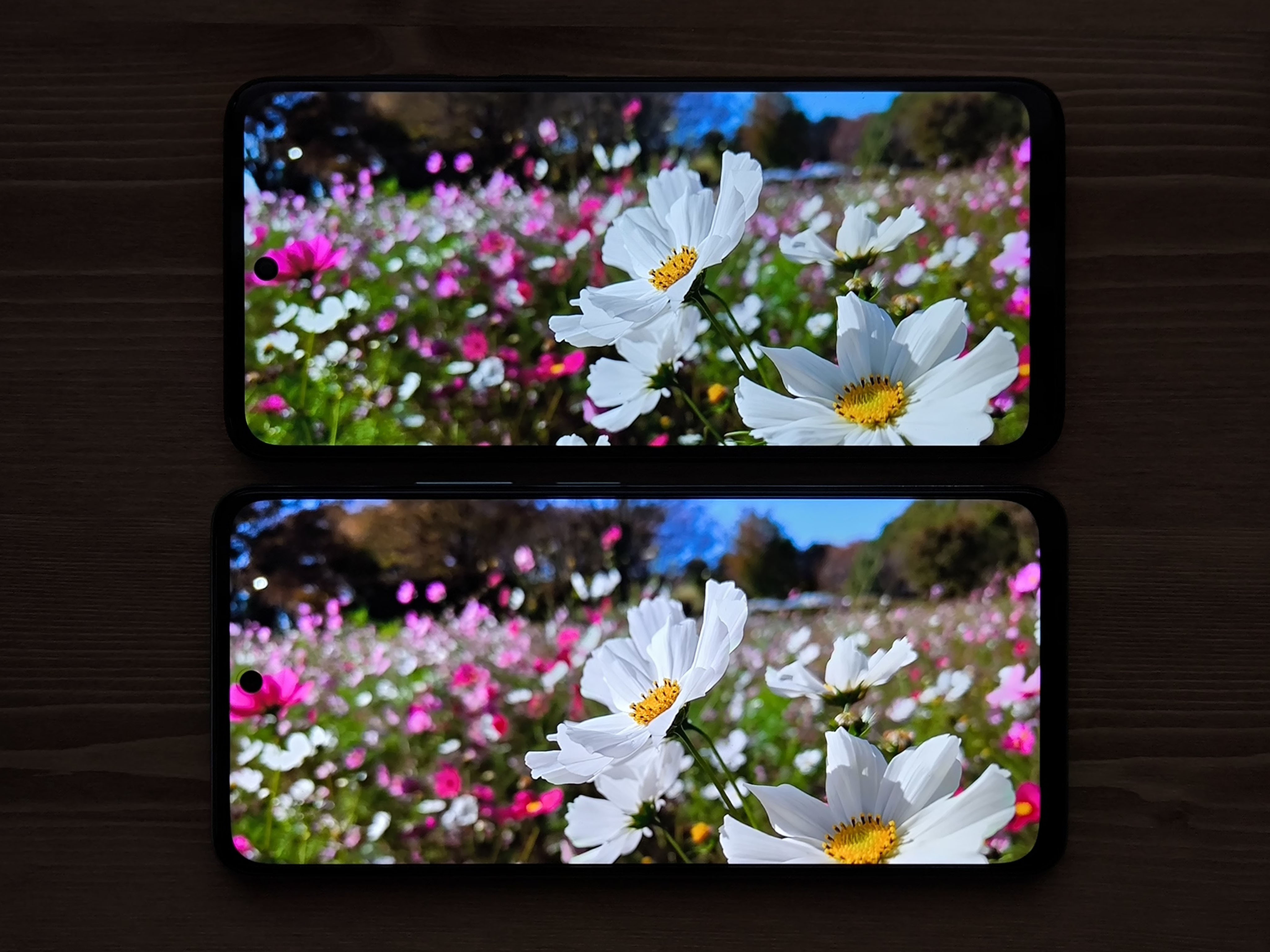 白い画像以外に花の写真などを表示し見比べてみましたが、明るい色が特に引き立ちますね。Instagramやストリーミング動画を頻繁に観る人にとっては間違いなくプラスのポイント(ステレオスピーカーの音は大きくクッキリ系)。