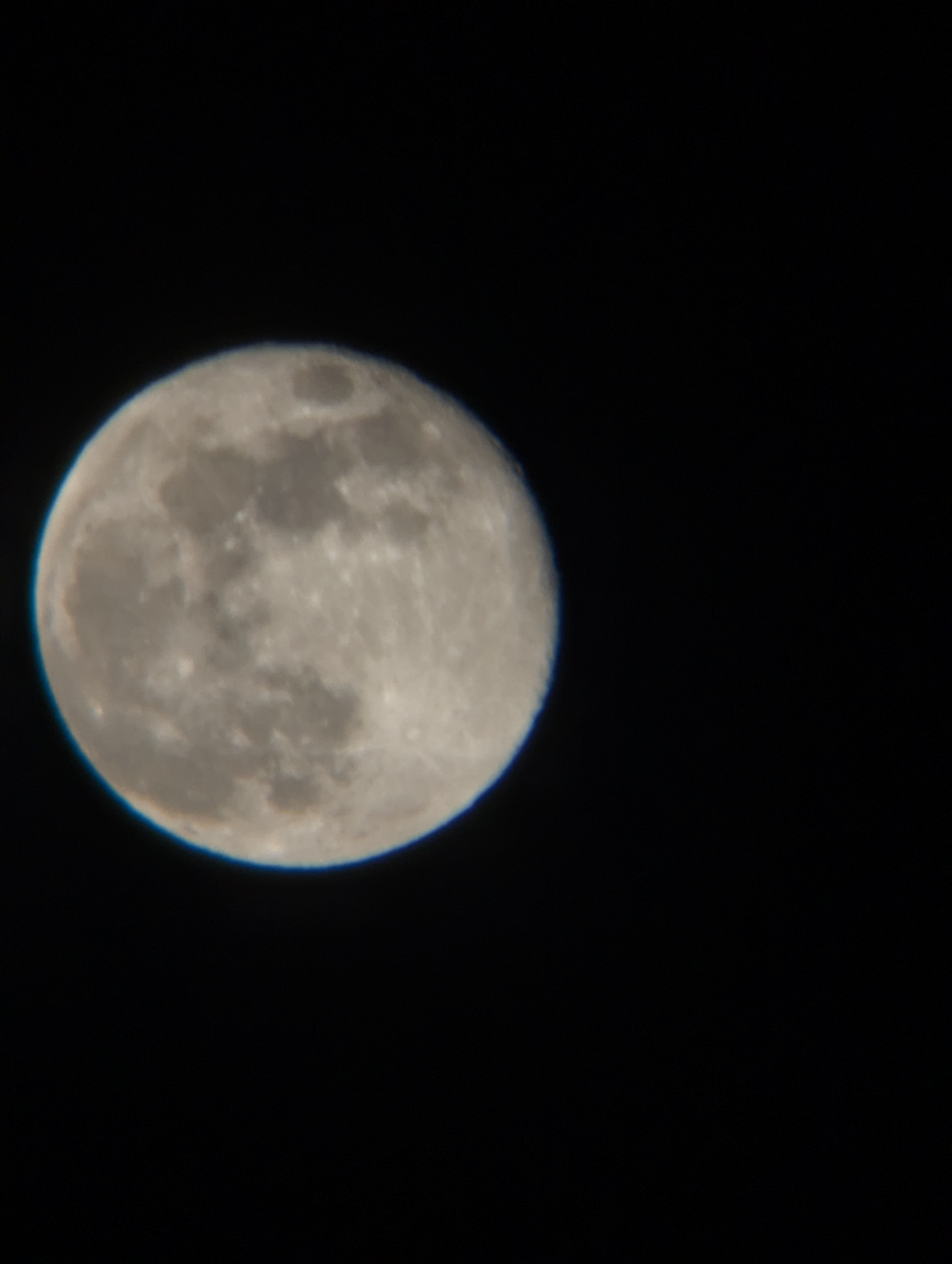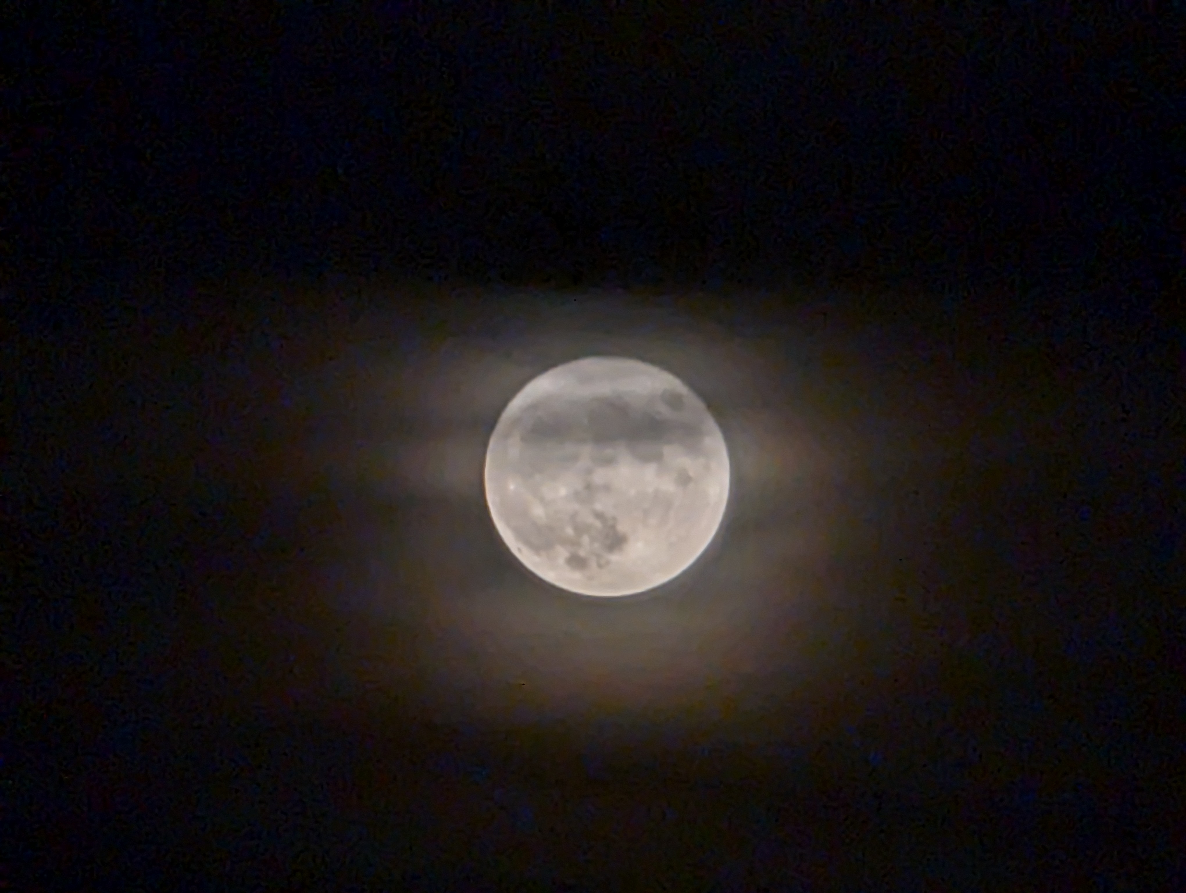 ボケ補正2回目。スマートフォンで撮影した月の写真としては十分でしょう。望遠レンズを備えるスマートフォンで『大きく月を撮りたい』という人は、『望遠レンズを追加する』という荒技を是非お試しあれ!