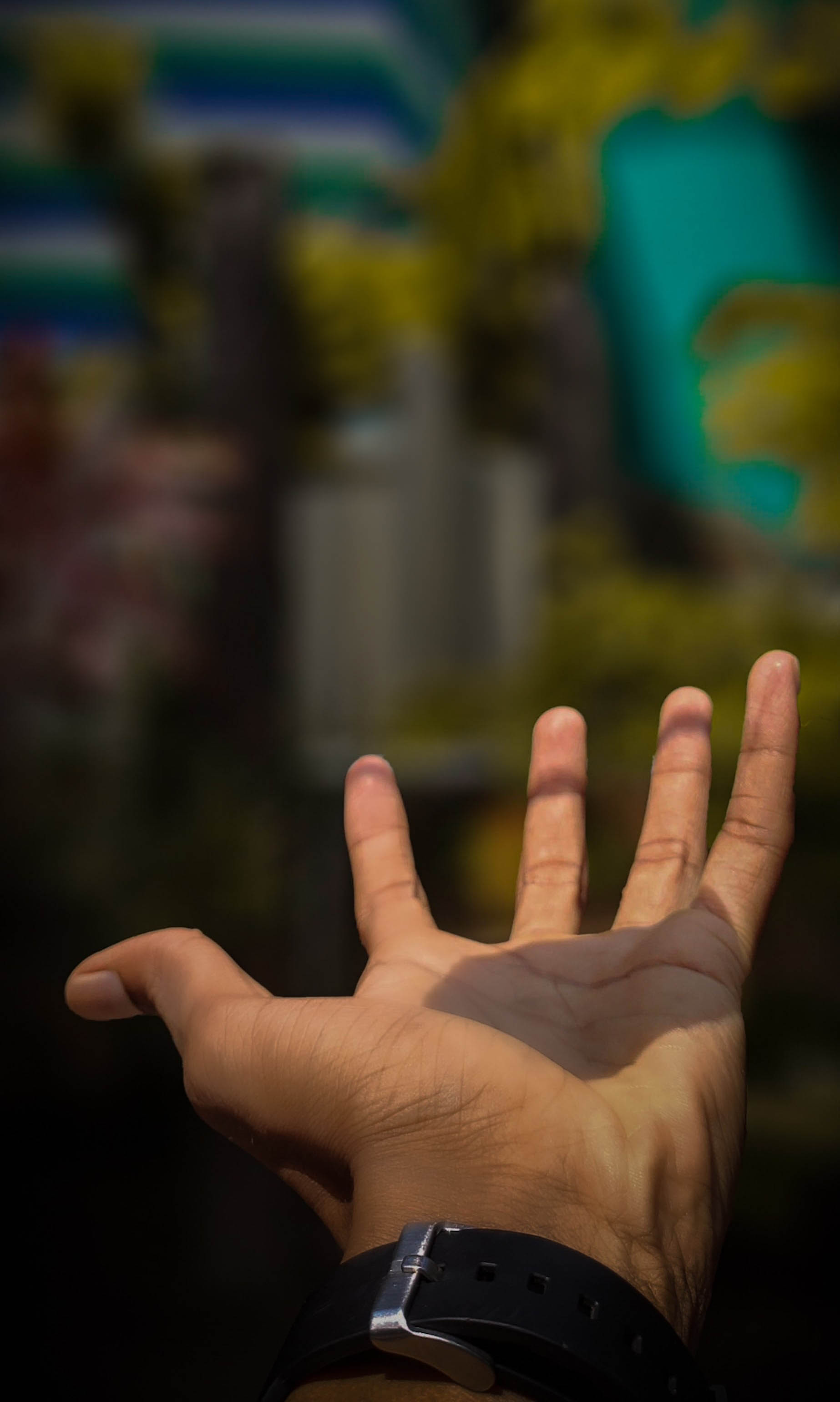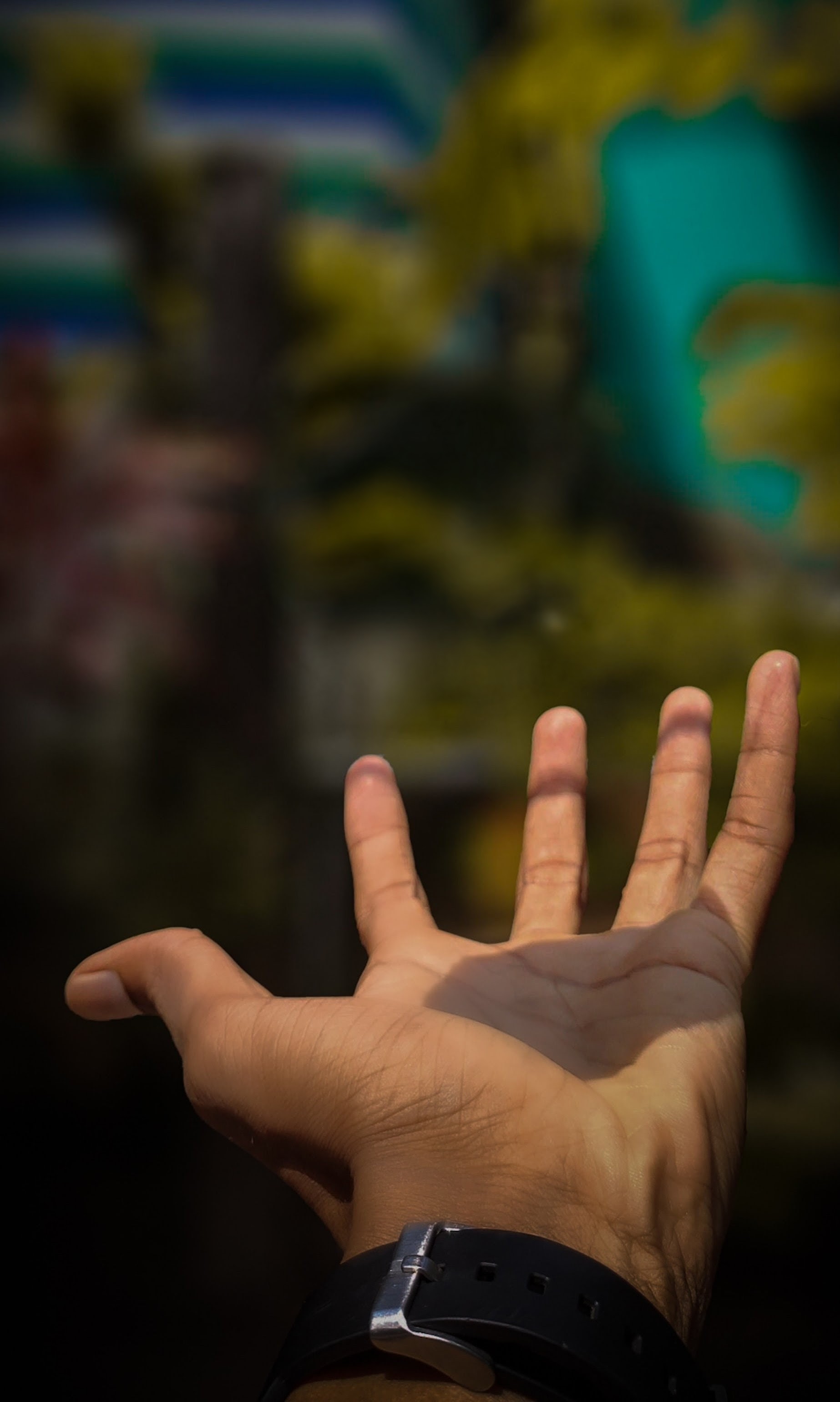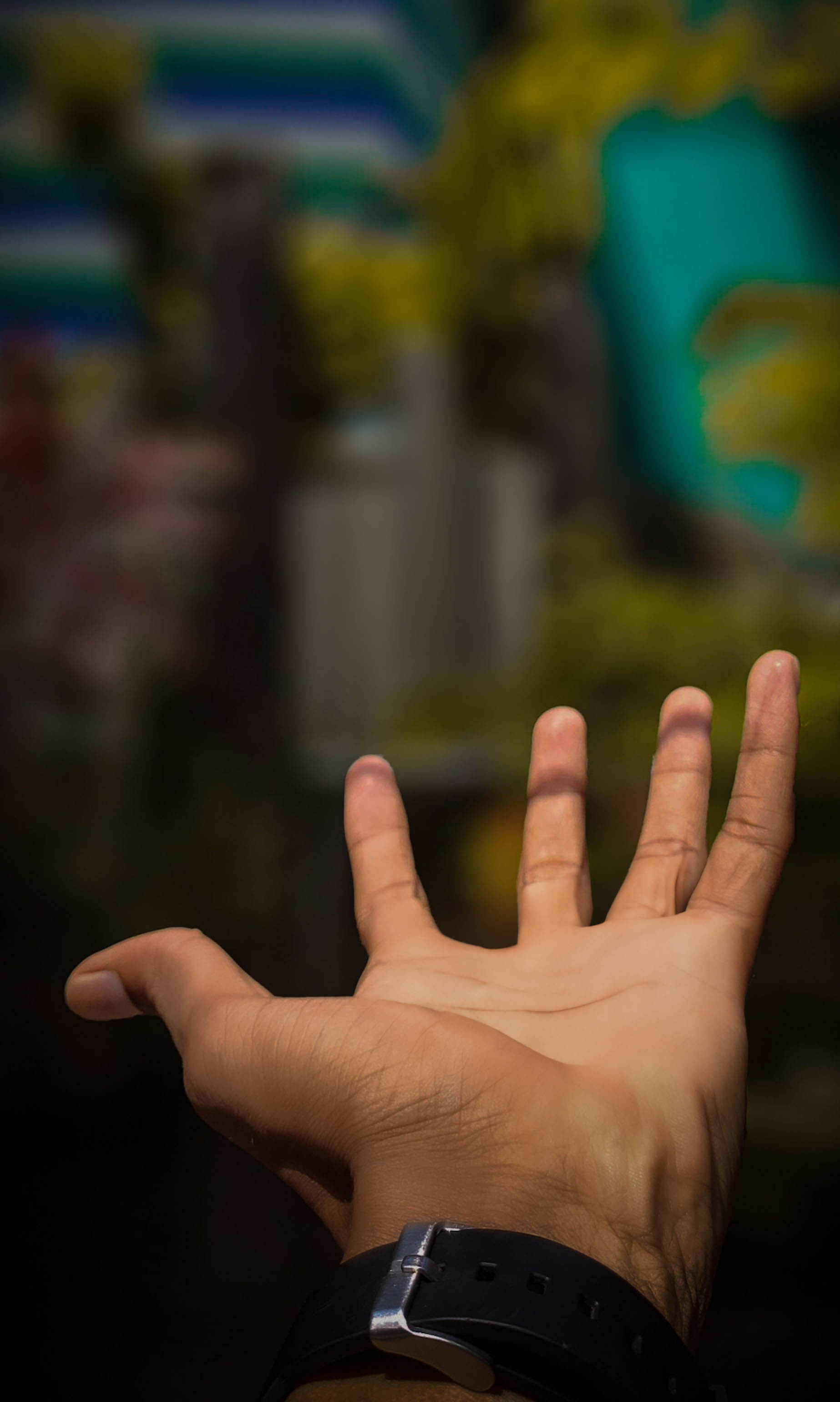 そして本当の実力を見られるのがココから。デフォルトの画像に写っているのは手の平とりんごのみ。背景はボケていて、どういった景色なのかはっきり分かりません。画像の外側を描く難易度は間違いなく高いです。それがPhotoshopの生成AIにかかるとこうなります。