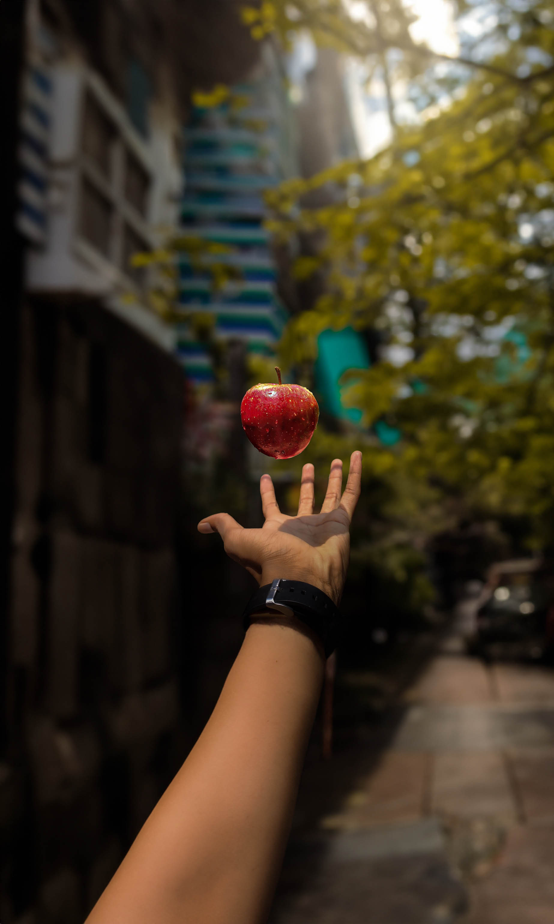 まずはこちらが一番ベーシックな使い方。消しゴムマジックの進化版とも言えるでしょうか。宙に浮いているりんごが消えてなくなりました。背景の生成も自然な仕上がり。