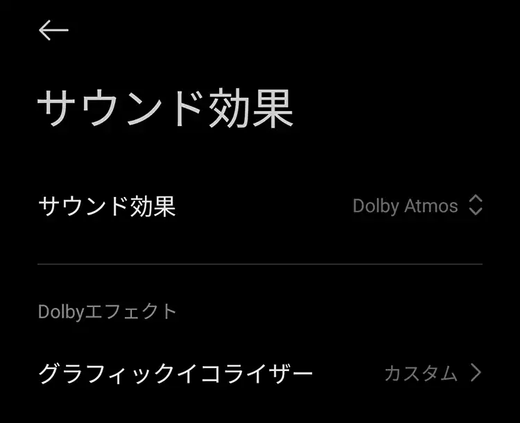 サウンド効果は『DOLBY ATMOS』『Xiaomi Sound』から選べる