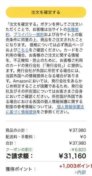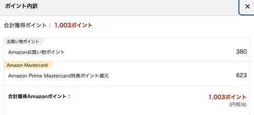 『Amazon Prime Mastercard』で決済すると、合計『1,003円相当』のAmazonポイントが付与。実質30,157円でPOCO Padを購入可能です。