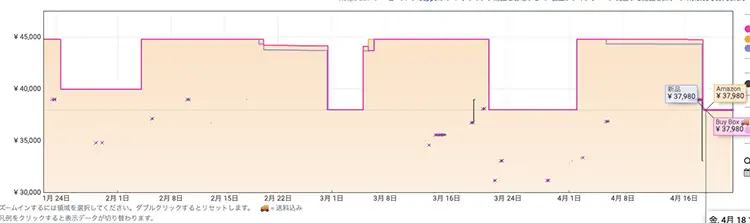 価格の推移を見ると、直近では『37,980円(税込)』が底値。そこに『6,820円OFFクーポン』が投入されたのだから驚きです。37,980円から『31,1160円(税込)』へと大きく底抜け。
