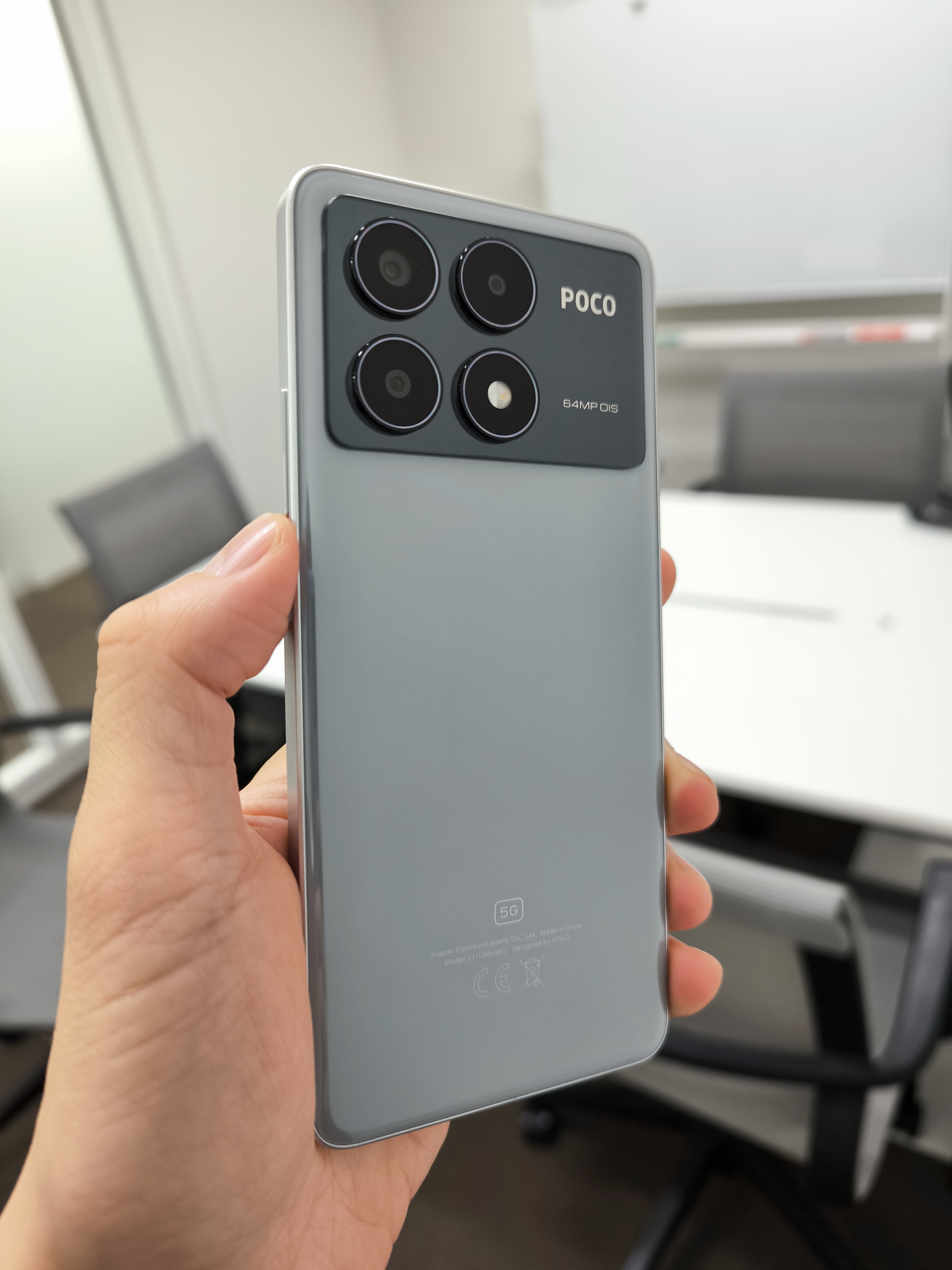 カラーが明るめのグレーかつモデル番号は『2311 DRK48G』なので、この実機が『POCO X6 Pro』であることが分かります。