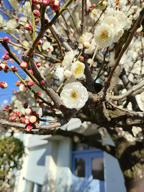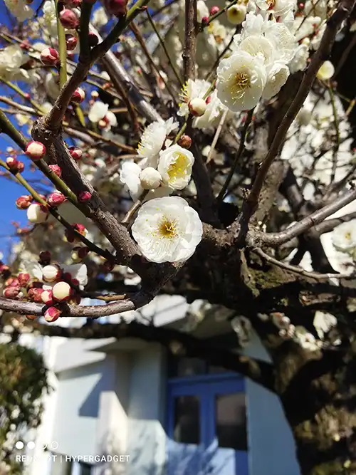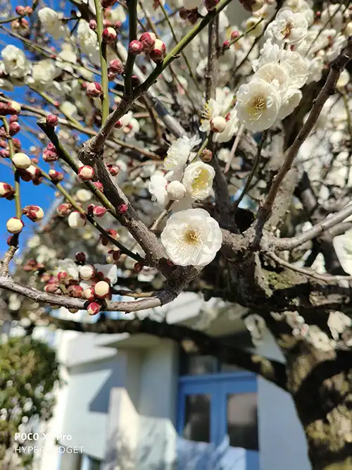 Redmi 9Tは影が重くなりすぎており、花の質感もイマイチ。POCO F4 GTとiPhone 15は近い色合い。後ろのドアや空に注目すると、POCO X7 Proのみ明るく華やか。どちらがお好みでしょう。