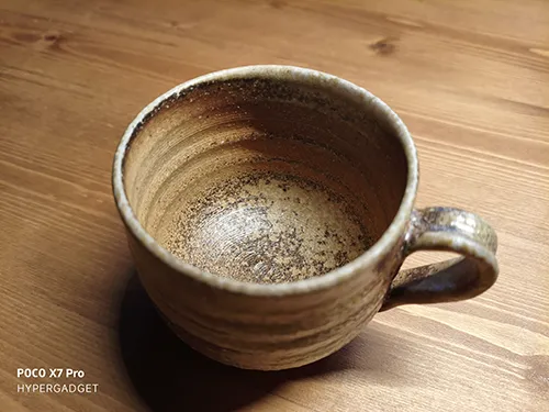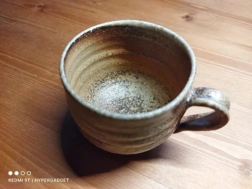 上から暖色のライトを当てて陶器を撮影。Redmi 9Tからは何故かあたたかさを感じません。POCO F4 GT、POCO X7 Pro、iPhone 15の順に温度が上がっていっている印象。