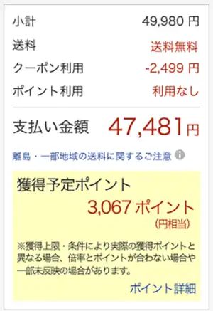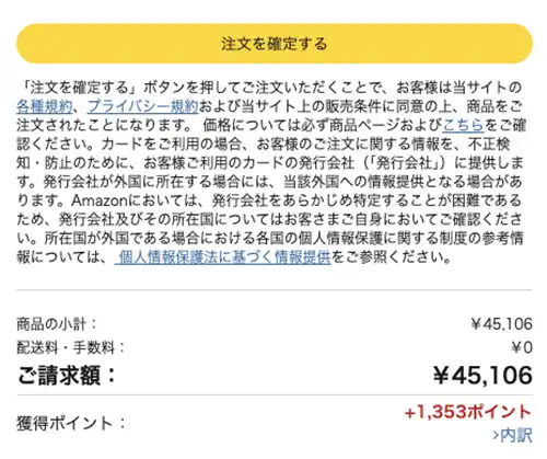プライム会員がAmazon Prime Mastercardで買い物をすると1,353円相当のポイント付与(Amazonより)