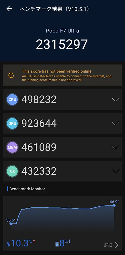 POCO F7 Ultra(Snapdragon 8 Elite) のAnTuTu Benchmark(V10.5.1)スコア実測