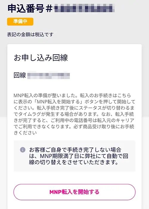 7.『MNP転入手続きを開始の前に』『MNP転入完了スケジュール』の内容を確認